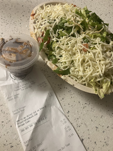Read moreLate night visit around 9:30 was not pleasant. My husband waited to be waited on (one girl behind the counter & guy at the register). Worker making food made the two peoples food in front of him & then made some pickup or online orders & told my husband politely that she will be right with him. After she made those orders she looked at her watch (it was 9:30) & told the guy at the register to wait on my husband because she was off at 10. The guy at the register came over & told him I guess I have to make your food. My husband asked if everything was ok. The worker said yes is everything ok with you? Asking my husband. The worker struggled to make the order as another worker walked in & the guy making our food said I need your help where have you been? My husband got home & told me his experience. It was our first and last time going to this chipotle. Chips are stale & no dressing added to the bag for my salad as requested. Chipotle you need...