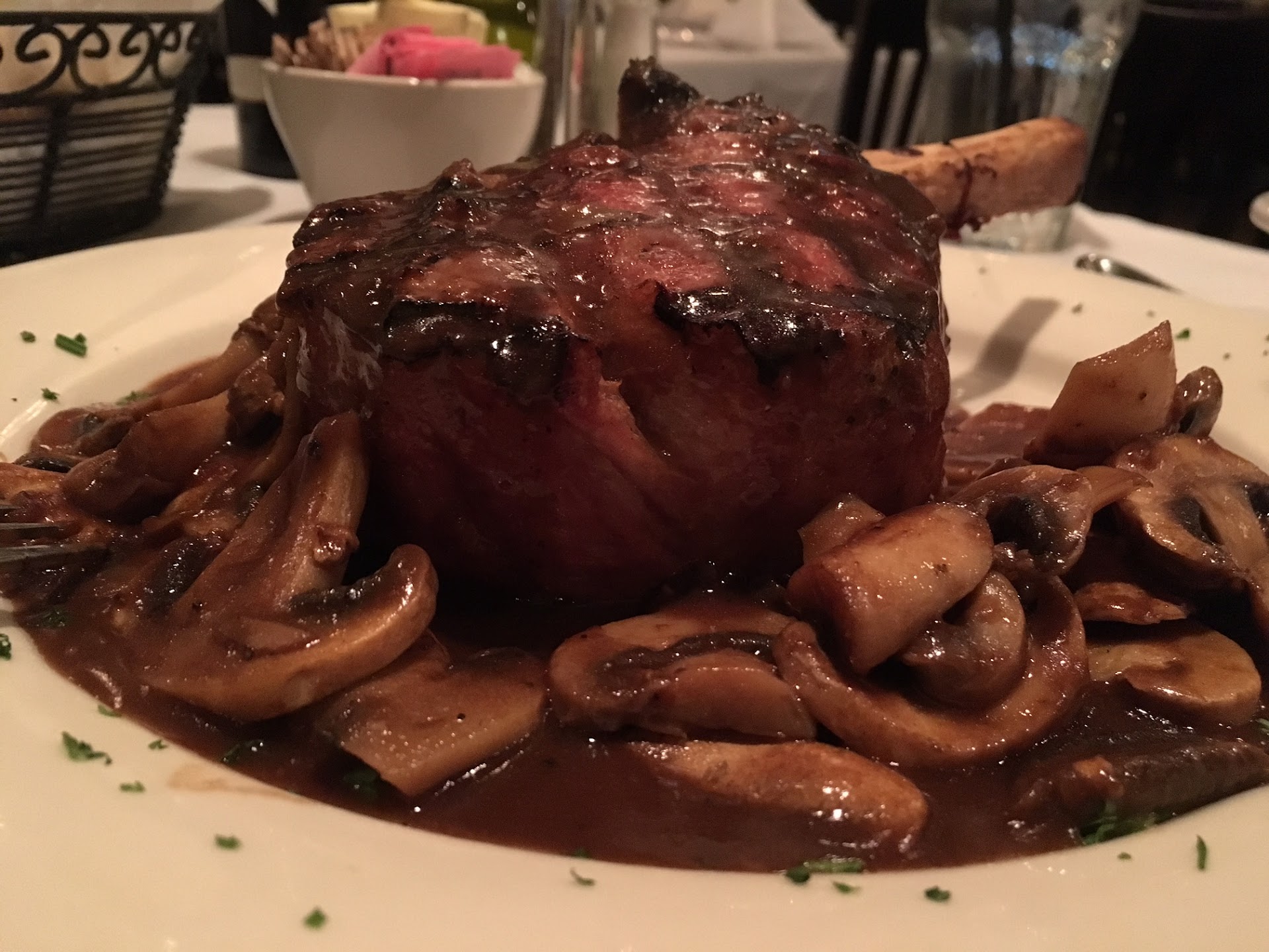 Read moreI normally don't write reviews, but felt compelled to in this case. I have eaten here a few times in the past, usually getting food to go. Last night, however, I decided to dine-in for my birthday! We, my fiancÊ and I, had reservations for 8:30, so the noise level, that has been mentioned, wasn't an issue. All the staff was pleasant and they were very patient as we were taking our time. Due to the celebration I brought my own bottle of wine. Corkage was a very reasonable $20, just make sure that the wine that you bring isn't on their wine list (also very fair and reasonable). The salads were ample and well done. My fiancÊ ordered the chicken parmigiana and was happy with it. It was thin cut, as she likes it. Most of it came home with us however. I had the veal chop special with Marsala sauce [which I believe that they usually have regularly]. Oh my God! It was spectacular! One of, if not, THE best I've ever had. Thick (almost 2"), juicy and perfectly cooked with a great sear, it melted in our mouths. Even my companion was very impressed! It was so good that I felt compelled to call out the chef, who was also very pleasant, to personally pay him compliments. To be perfectly honest, the Veal Chop was what solely spurned me to post this review. Normally, not much impresses me when I go out to restaurants; after managing a very nice Lobster/Steakhouse and cooking regularly chef quality meals at home myself, it takes a LOT to make me go wow! Look at the pic of my Veal Chop below and judge for yourself! Wow! Thanks Gianni's, and especially Ken, the Chef, for a superb meal!