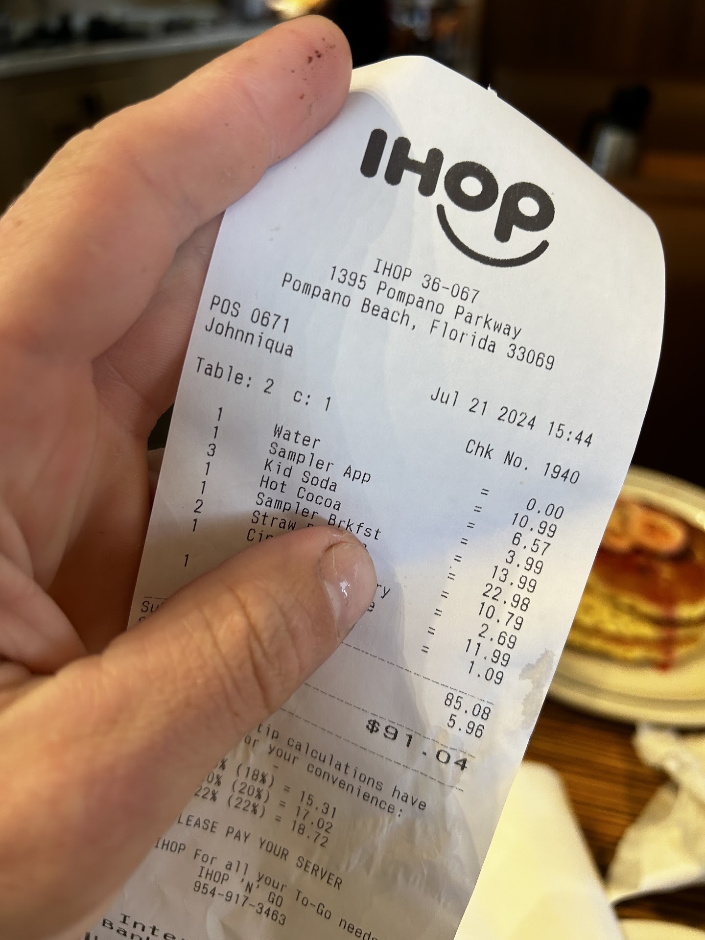 IHOP Corporateâthis location desperately needs oversight. Poor food handling, inventory issues, and lack of basic service standards made this a truly disappointing experience.
