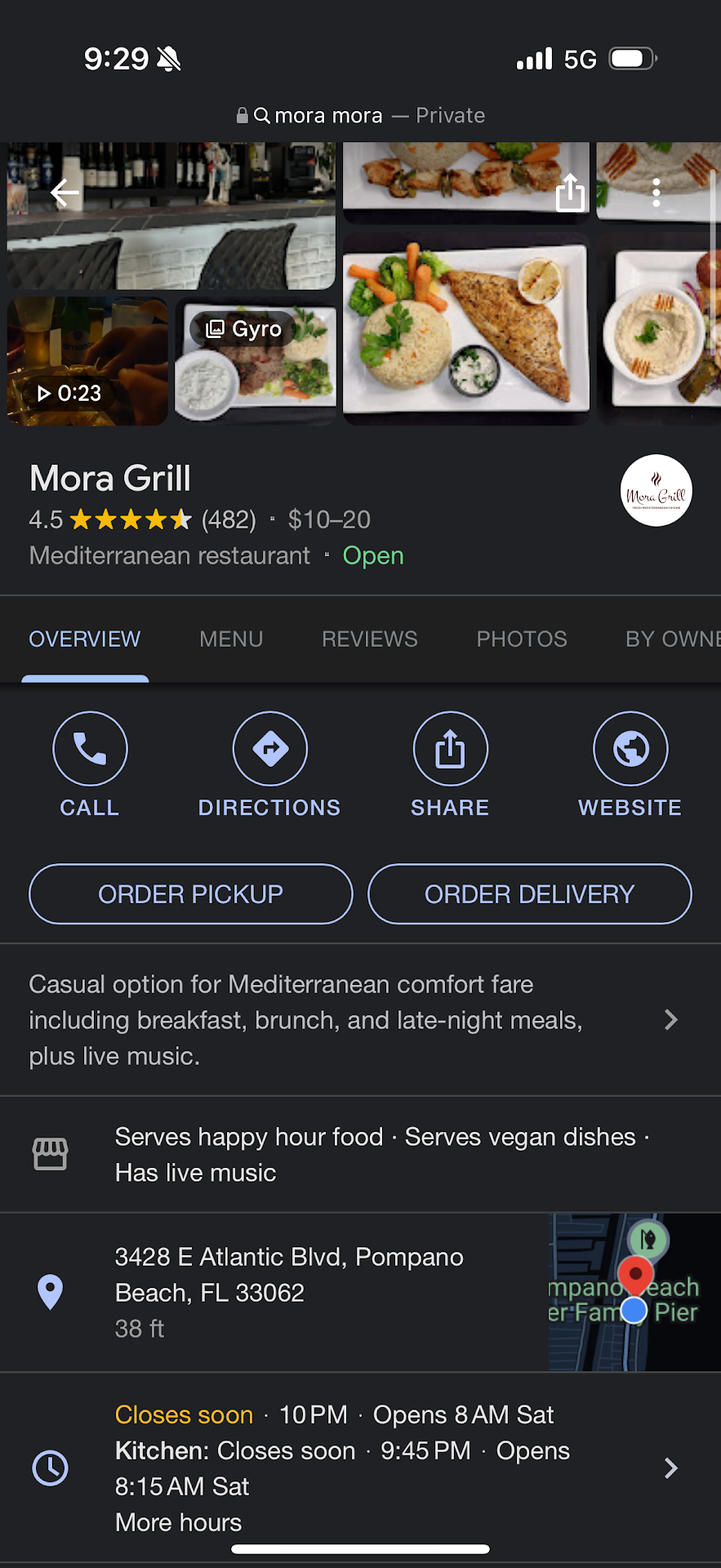 Read moreCame here at 9:20, excited to try this spot at first since in the mood for some Mediterranean. Walked in with 2 people sitting inside. there was a girl at the bar that looked like she was putting the bottles away. I asked if the kitchen was still open and she said " let me check" , she took a good minute to come back out. I was 100% thinking she would say yes because attached below are the times and it says kitchen closes at 9:45pm. She comes back out and says kitchens closed. I was very shocked and disappointed. I told her the website says restaurant closes at 10:00pm and the kitchen closes at 9:45pm. She responded by saying " those are hours when we are slow" . To be it just sounded like " Tonight the kitchen is lazy and wants to close earlier than what our website says". I don't see how a business can be successful if you close 25 mins before your business hours on the website and make some money from walking in patrons like myself. I would suggest the owner can tell yelp/google to adjust the times when the restaurant is slow they close earlier.