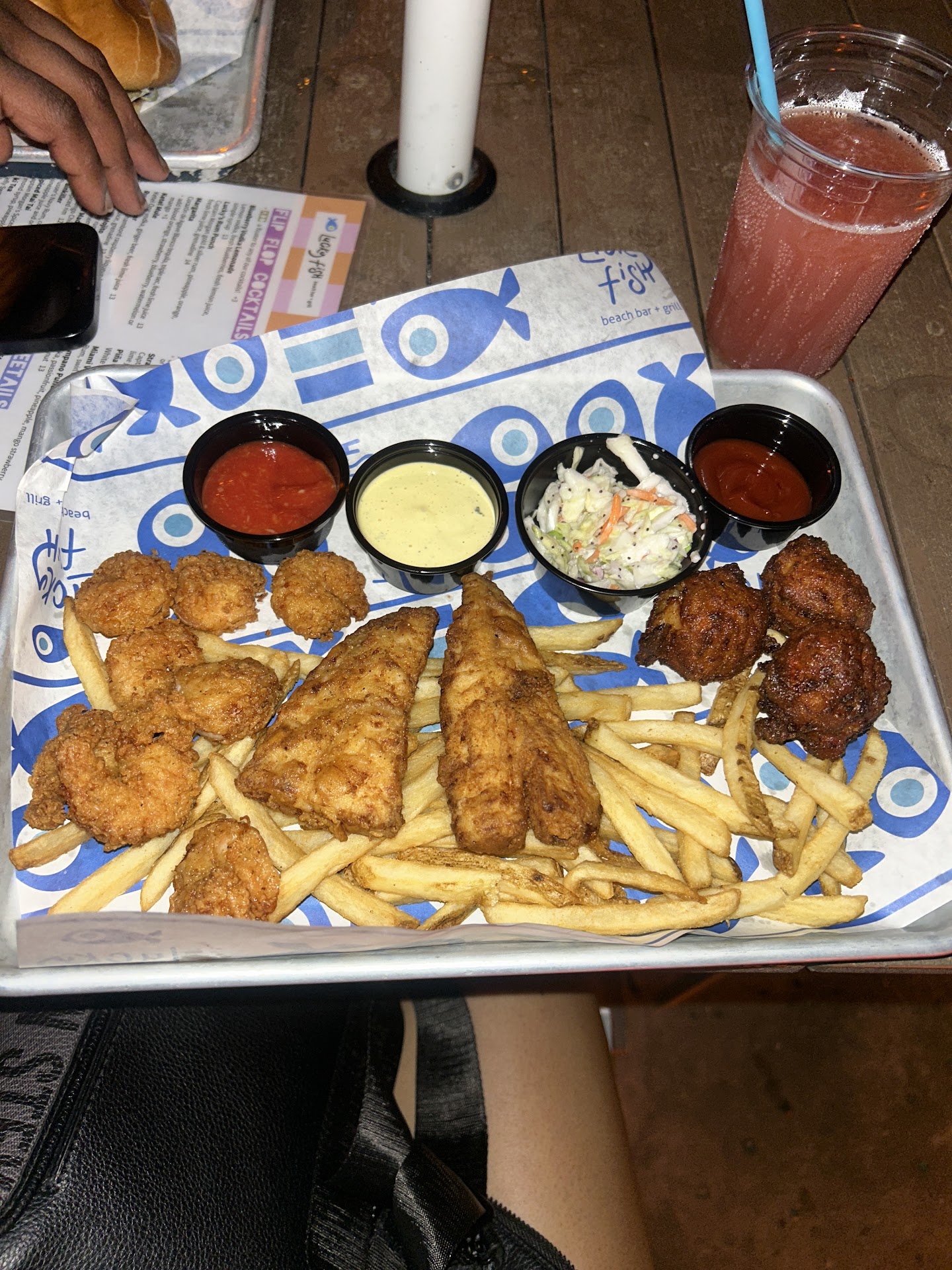 Ā Ā Ā Read moreWe came here last night for dinner, aware of the heavy wind and light sprinkles here and there but the experience we had here left an impact because we will not be returning. This place is very nice, right on the beach, however, itās fully outdoors with little head coverage. When we first arrived, the hostess asked us if we wanted to sit at a high table with no chair backs, we said no and her attitude changed a bit. There werenāt that many people there, mind you. She then sat us at a bird poo infested table and gave us a little nightlightā¦. For starters, the lighting ambience is extremely poor. This would be a nice place to sit during the day time or evening when you do have some type of lightingā¦. Thatās if you donāt mind extremely bland food. Upon arrival, I read the reviews on this restaurant to get a feel for where we were going. I read a LOT of reviews about people receiving the wrong order⦠How does that happen? But let me start at the appetizers. We ordered calamari and chips/guac. The calamari was extremely salty and the guac had absolutely no flavor. The chips had this feeling like they were kinda stale- also not that much of a fresh chip crunch. When it came time to order, I ordered the chicken mediterranean wrap. Waited maybe 20-30 mins and they came out with the shrimp wrapā¦ā¦ Returned my order then received the correct order only to wonder if they actually use seasonings in any of their dishes. Not only that but my side order was fries. I didnāt expect a bar/grill to have such horrible fries⦠They felt like they were warmed up 3 times and then sitting out in the open in between. You know that soggy, oily, lifeless feeling that fries have when theyāre not fresh? Yeah. Overall, the place Is really pretty! I think.. it was dark⦠maybe if there was more lighting and less bird poop. Iād give this place a 4/10 would not...