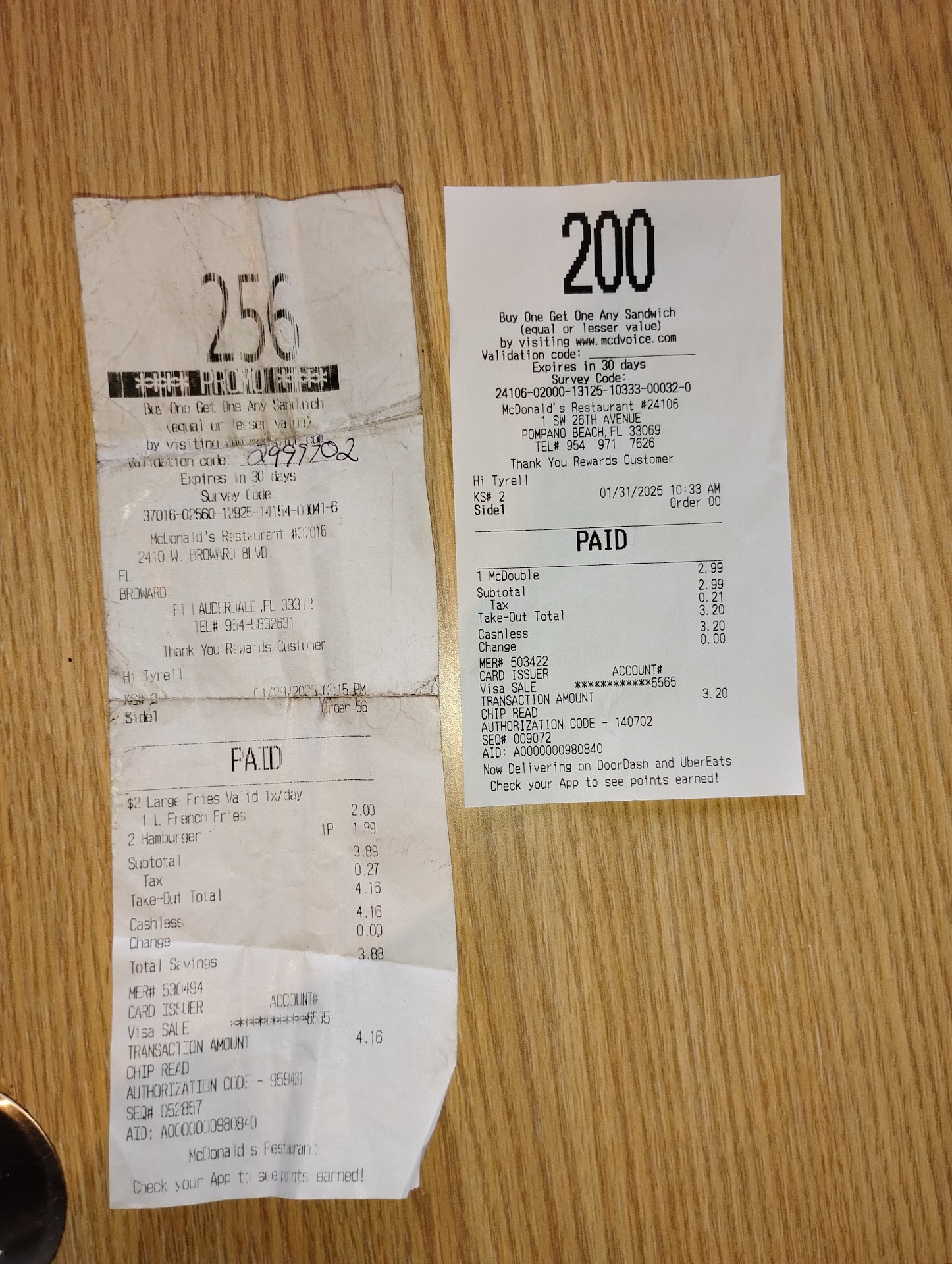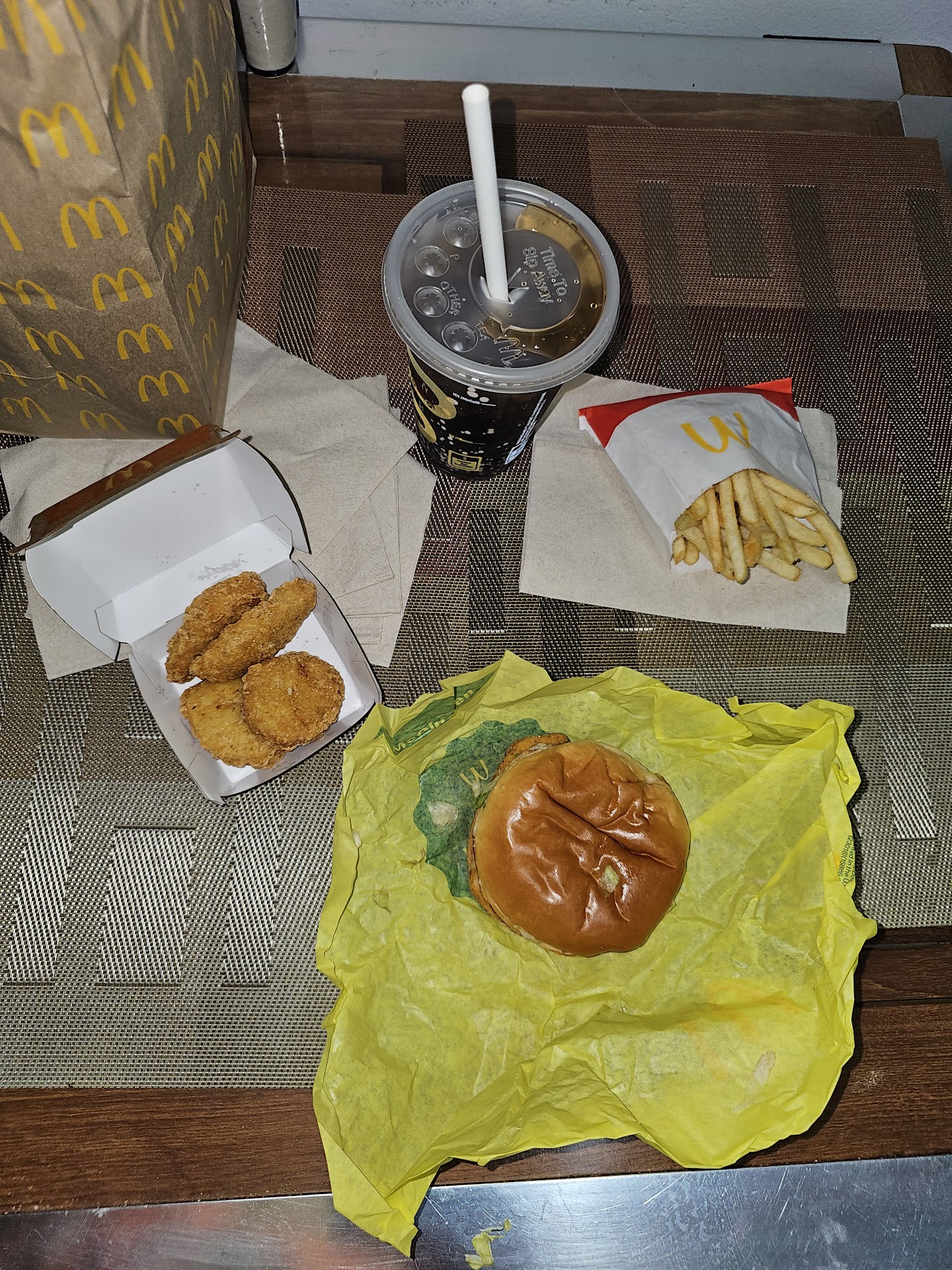 Read moreOrdered a Big Mac and ask to have the pickle deleted from the Big Mac and you better believe it when I reached home it was loaded with pickles. Disappointing because pickle itches my lips and tongue. Also ordered a Happy Meal with chicken nuggets, those nuggets were hard like rock and no sweet and sour sauce. I guess my request was denied. I thought McDonald's was supposed to throw out stuff sitting for more than 10-15 min. It's just certain things you cannot have sitting for too long. Another thing I like with these restaurants when they say will bring it back. Poor Customer Service. Yes! Poor Customer Service. We have Uber and Lyft now so why don't McFonalds have it delivered and make sure it is the correct order when it leaves the store. Do I have Gas to waste these days. Sure don't. McDonald's is not what it use to be and I am really trying to understand why people like myself still eating from this place. Gat to be really hungry and no other options at the time. Another thing no sincere apology for the staff it's just oh well. When you are catering to someone's stomach take pride in what you do. If you won't eat it then don't serve it. McDonald's know better than this. Will the owner eat hard rick chicken nuggets and a sandwich loaded with pickle when he asked for no pickle. Were we speaking the...