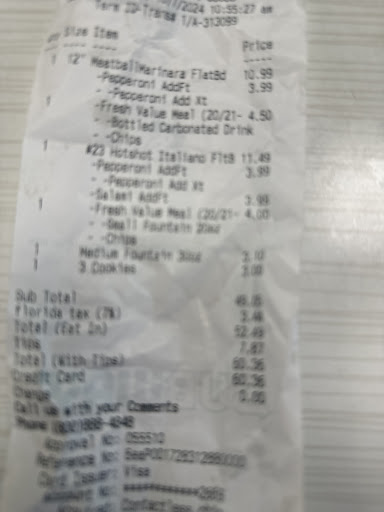 I usually don't do this, however my experience here was painfully awful. the girl who made my sandwich was nice, she didn't cut it in half but whatever, pulling it apart with my bare hands was great.... It was when i didn't choose on the payment pad to leave a tip, she gave me the most horrific attitude, I'm normally a great tipper, however her manager was so rude and lazy AND a liar. they wouldn't allow anyone to even sit down, this was at like 6:30 PM on a Friday. yeah i get there is only 2 of you but people wanna sit down, they put all the chairs up. (this subway is in the walmart) also when i was paying the manager told me that i could only pay one way, (not true) which i had wanted to use a gift card as well... I was a little shocked it was $18.00 for one whole sub and a tiny bag of chips plus drink, i used to pay that for 2 subs, I know the prices have gone up for everything, but this didn't feel right. I only got a normal steak and cheese. that was 11.99 plus 6 dollars for the chips and drink and then the pressure to tip cuz the stupid pin pad, so these people just expect it, i wanted to be like um you aren't a waitress, you wont even let me sit down! why should i have to tip you for doing your job? and this goes to all the places that do this now. waitresses don't even make minimum wage, thats why tipping is important, as is the return of good service. I seriously way over tip but I'm struggling at the moment and i didn't expect that to cost 18 bux. even after this girl looked like she was gonna beat me i still managed to dig in my wallet 2 dollars of quarters and gave. so it was actually 20 bux... it isn't even about that, its the principle. I dont know if writing this will matter, probably not, but i'll certainly never going to this subway again. Disrespect to a good paying customer for no reason is just not acceptable. I know its South Florida, but c'mon people, can't we be better? treat each...