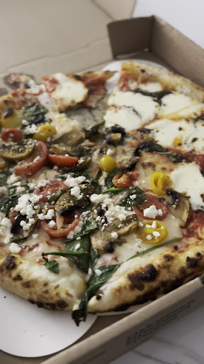 We arrived on a Monday night and ate inside. It was very clean, updated and well organized. Placing our order was a pleasant and smooth process. We ordered a half margarita and half white pizza- both of which were signature pizzas. She warned us of the potential for some of the sauce to mix since it had two different sauces. We understood and accepted the risk gladly. Pizza came out quickly and nice and hot!
