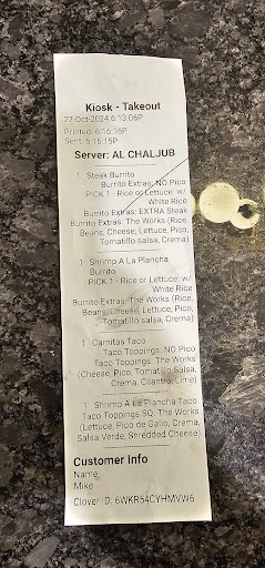 Read moreI gave this place three opportunities, the first time the food was great and I was excited for a new place in town. The last two times have an absolute disaster, the older lady with glasses needs some serious training. She goes a million miles an hour and makes the worst burritos. Both times I clearly picked NO PICO, guess that wasn't clear enough on the receipt, but I got PICO, ruining my meal both times. I even asked her and she confirmed that it's not in the burritos. If you love rice that's all you are going to get, nothing is balanced out, all ingredients are on one side of the burrito, she puts zero effort into making them. I asked for extra protein, I barley received anything, they load them up with rice. It's a shame that a simple meal is this hard to get right. I wish this place the best, but they will close if this continues, I hope the owner reads this, try your own food and you...