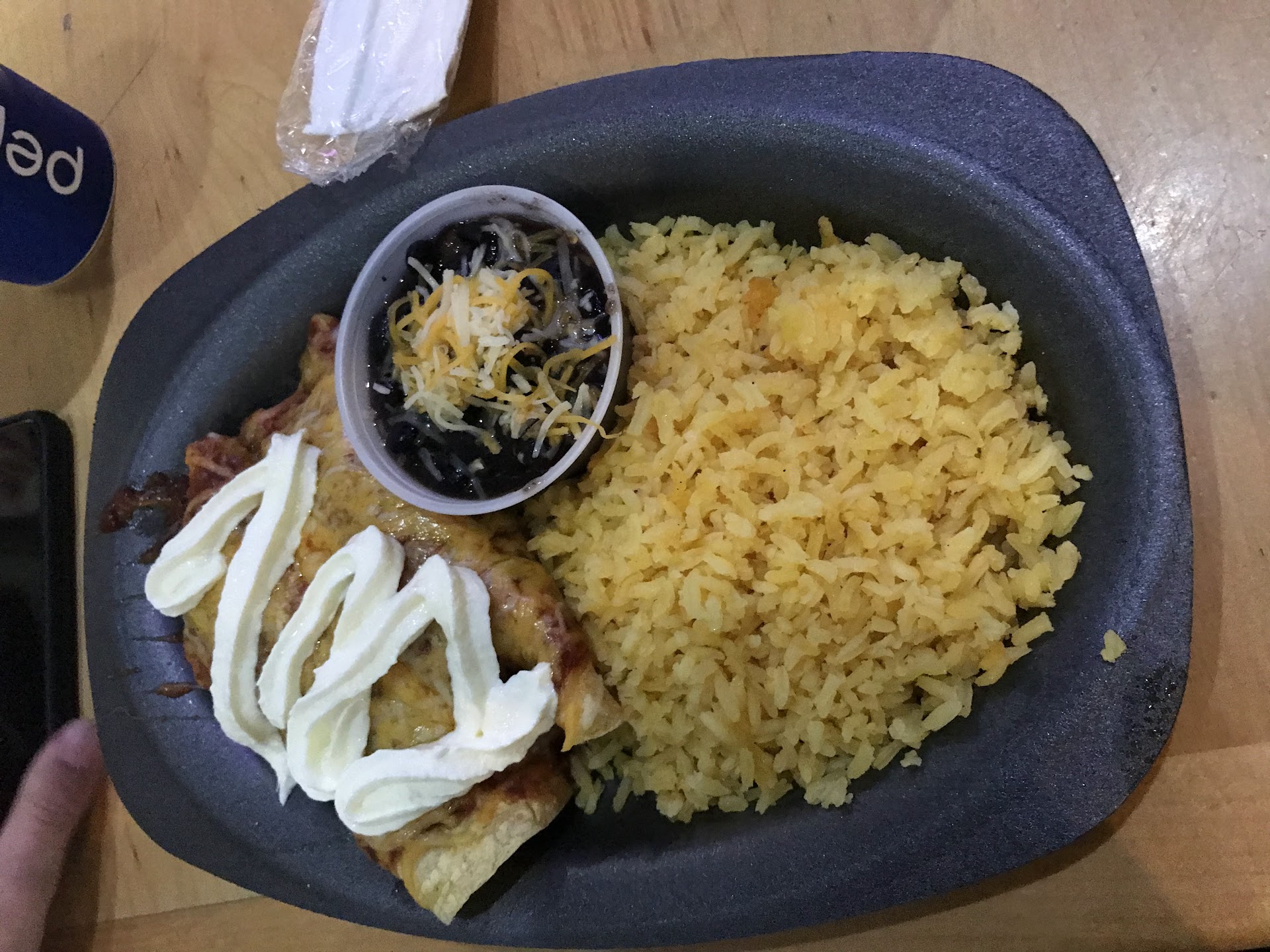 Read moreWould give it a 0 if it was an option!!! My wife ordered quesadilla literally no cheese, she ordered a taco they forgot it my 6 yr old daughter order steak with a side of sour cream there was literally a water bottle top in it plus a blue plastic piece, I bring it down they do nothing except offer another side of sour cream no apology no credit..... We will never ever go back guarantee u, if they gave us $100 dollar food credit or whatever still wouldn't go very very...