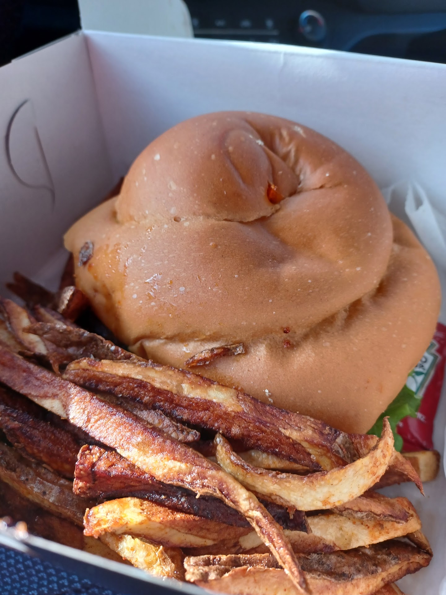 And don’t even get me started on the fresh fries. You can tell they are fresh because they use the same method that in and out burgers (in Texas); they put the entire potatoe into a cutter and out come the perfectly cut potatoe fries. Season on them is also DIVINE.