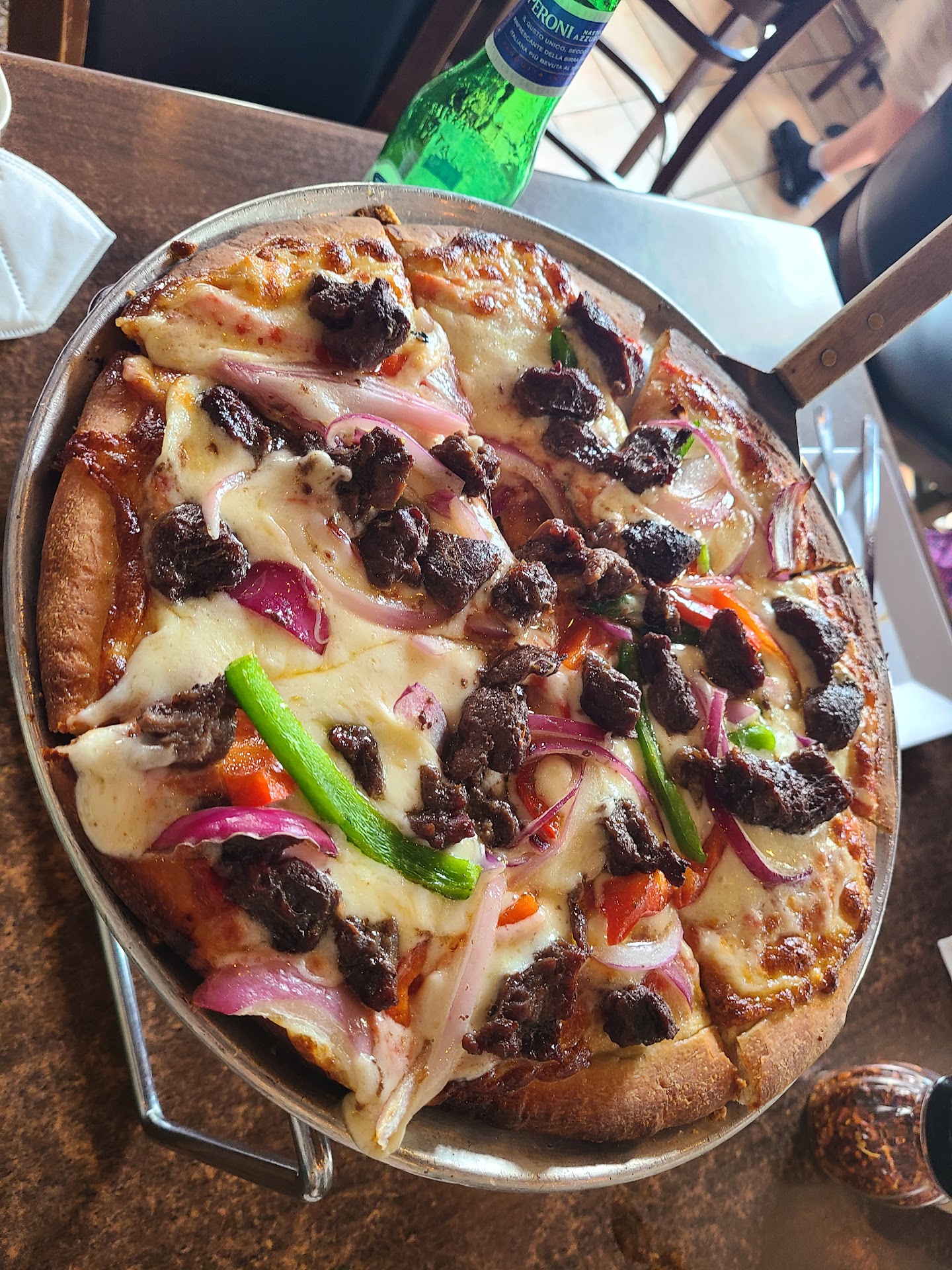 We ordered Pina Coladas, Strawberry Daiquiri, and Moscow Mules. Good god they were the best drinks we have had yet in Puerto Rico!!! The were well blended more in the sweet side verse stronger side, so if you want it strong order an extra shot in it. The pizza was Brick Oven and was really good. We ordered the Tutti Pizza Supreme and the one with skirt steak. We enjoyed the Supreme pizza lots of flavor. The crust was crispy and well cooked, the pizza wasnât greasy, and the vegetables were perfectly cooked not overdone or underdone. We also had someone order the Salmon and cheesy rice which was surprisingly delicious. We also ordered the Crème Bur-lee for desert which had a great taste and crunch. We really enjoyed this place, I think you will to. Itâs clean, inviting, and we all donât speak Spanish so the help was appreciated....