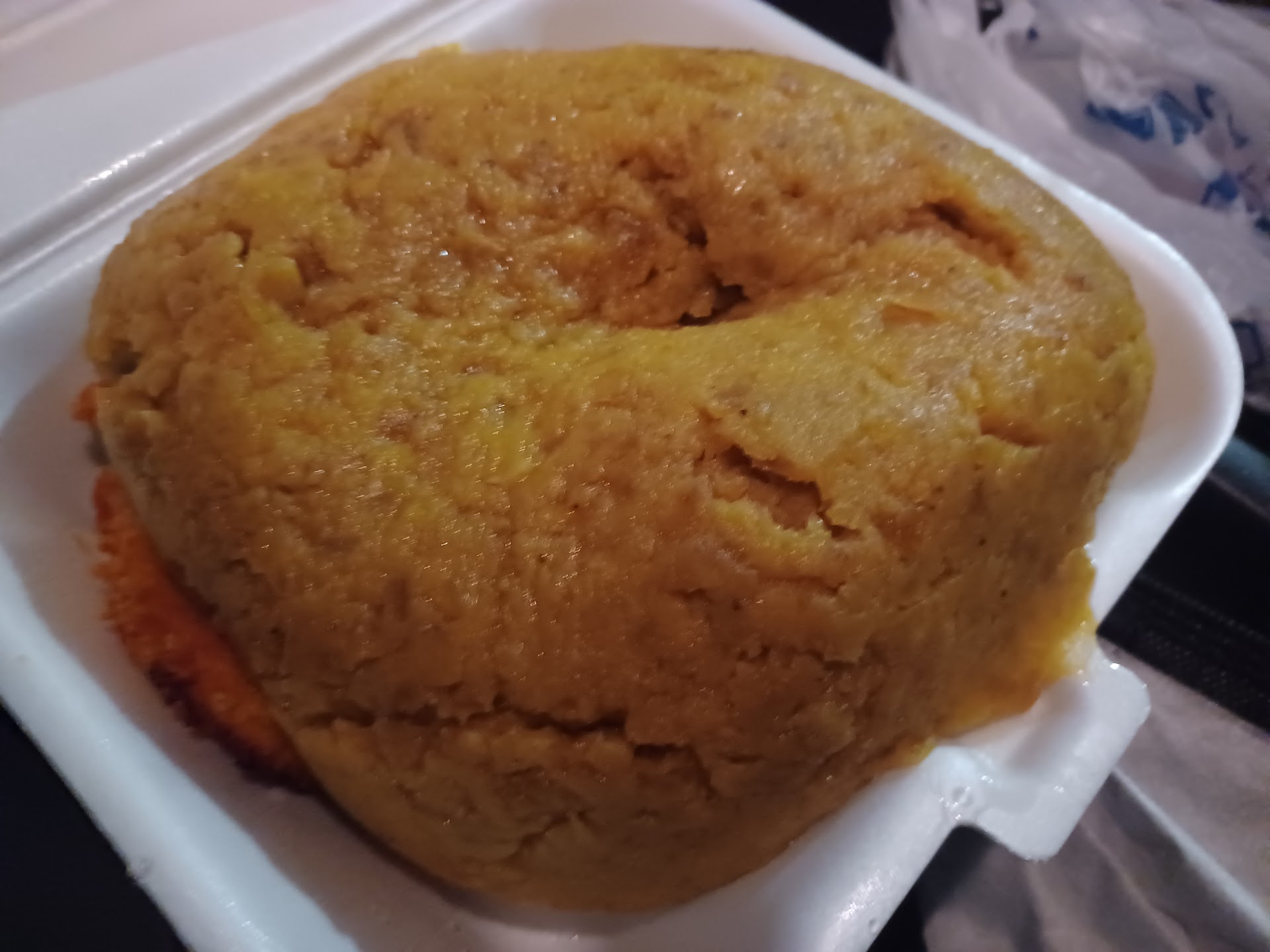 Now, to be honest, the texture and size makes me think that it's not really a mofongo, or at least, not platano based. Who knows.