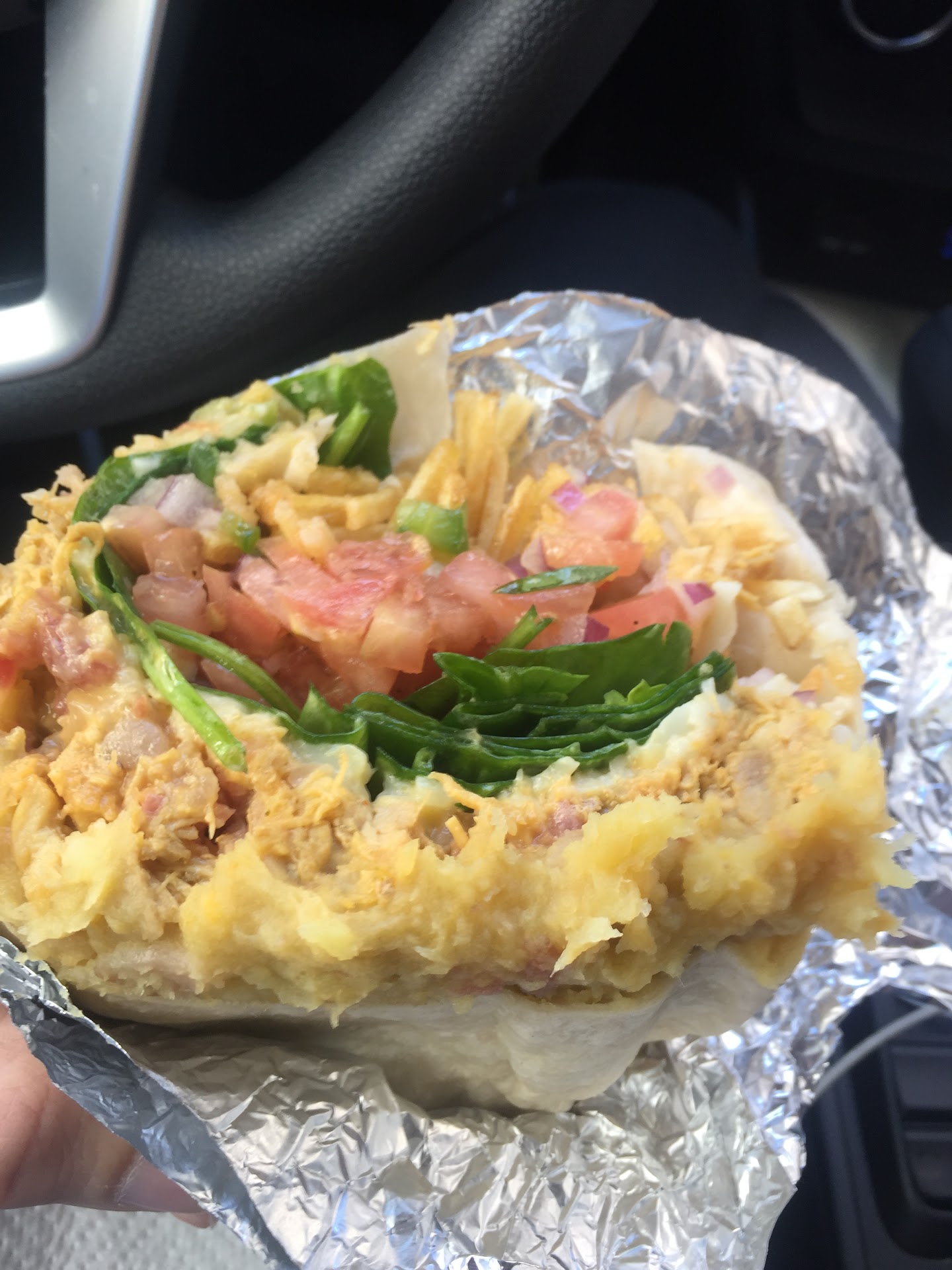 Read moreI personally love the burrito here, I give it 4 stars because I like Avocado/Guacamole on a burrito and none that I know of here for extra taste for my like, but other than that, amazing great tasting addictive burrito!... the burrito I ordered, “with majado and everything on it, no bacon, extra pepper” is amazingly delicious, I also tasted the potato with its extra ingredients, and wow everything delicious!, I’ve been here 3 days in a row already going for the 4th tommorow. Definitely excellent service, very friendly, Spanish or English speaking...