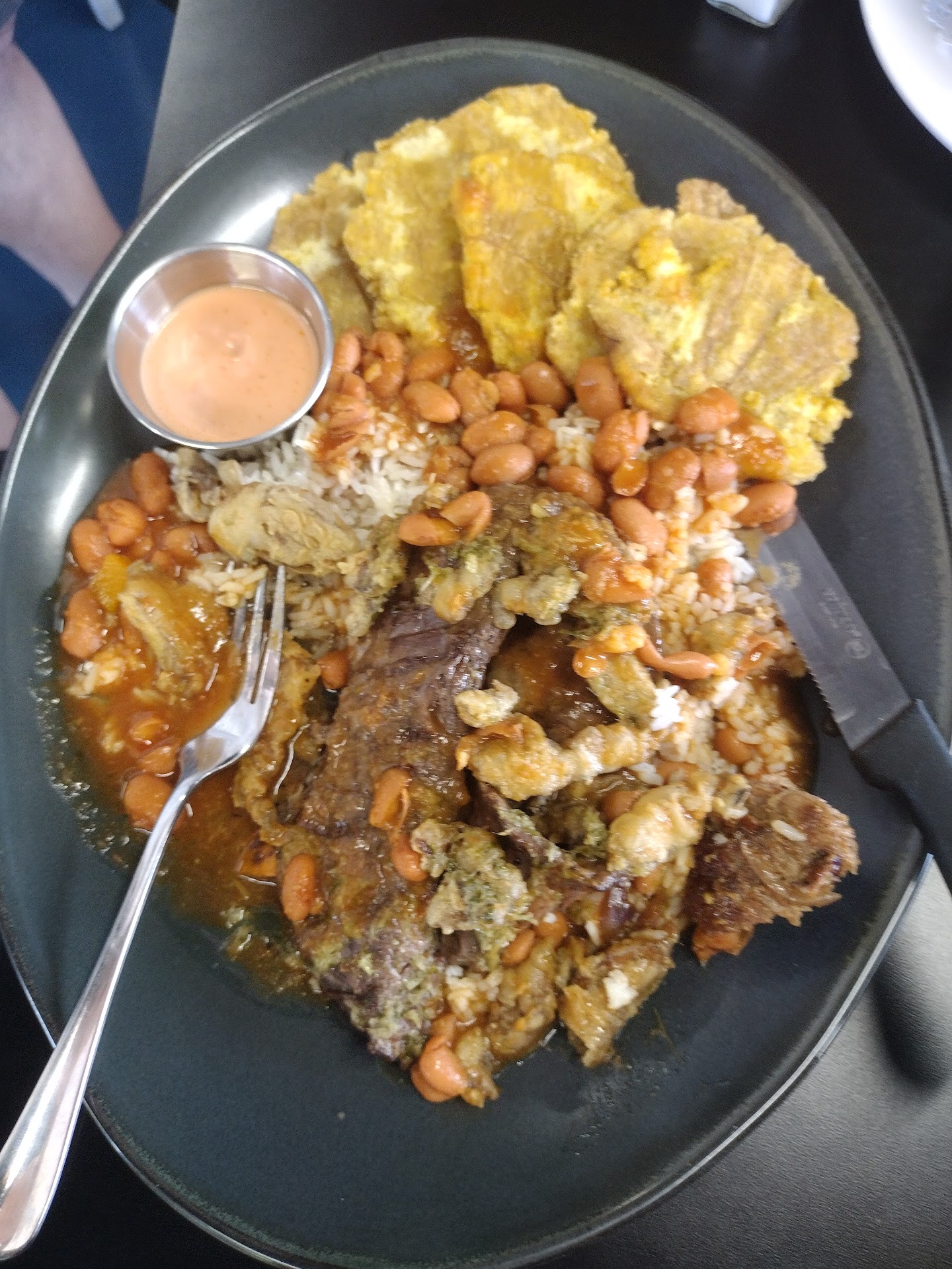 Read moreNo frills place, with a wonderful atmosphere nicely decorated. Food was delicious and reasonably priced. Service was top notch! Kevin was probably the best waiter we’ve had in a very long time (and he says he’s only the bartender). We had sorullos with bacalao and stuffed jalapeños for starters: delicious and different. Teo types of chicken breast, mahi mahi fillet and pork ribeye. Every plate delicious. For dessert: the most wonderful guava flan! Amazing. Do order everything from the beginning. Will definitely come back! Also, very nice music at a normal...