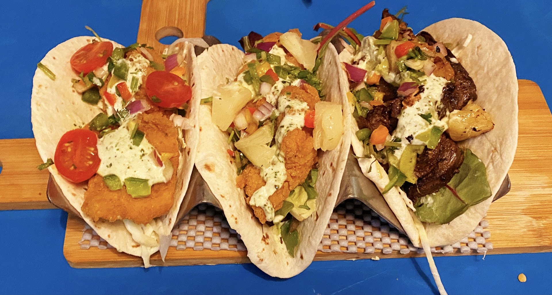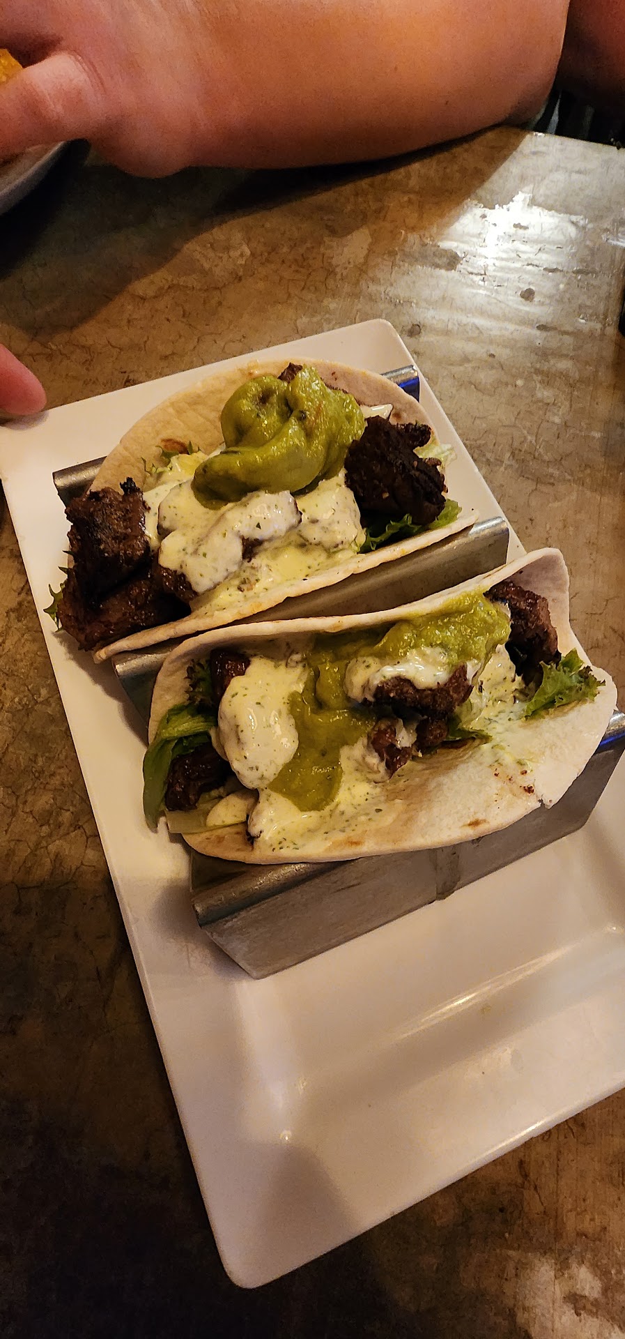 We came here because of all the great reviews and how good the food looked but dinner on a Wednesday night took almoat 2 1/2 hours. Our waitress had very long hair with red streaks in it and we hardly ever saw her. She was constantly behind the bar having drinks, every 2 minutes she coming out of the kitchen munching on something all while it took 20 minutes for her to grab us a can of coke and a bottle of water. Everything about the night was excruciatingly slow. Pez Globo which was supposed to be a rather quick appetizer still took another 30 minutes to come out and they're just fried cheese balls. I got what's called the captain which is just 2 tacos. The guacamole looked like it's from a bag (you know that weirdly smooth kind that's also darker than usual). The steak on the tacos and the white sauce was very tasty, just should never have taken 2 hours to make. Within 15 minutes of food being on the table we were done eating. So yes food tastes good, looks amazing, but extremely slow service and you have to ask for EVERYTHING like straws, napkins, refills,...
