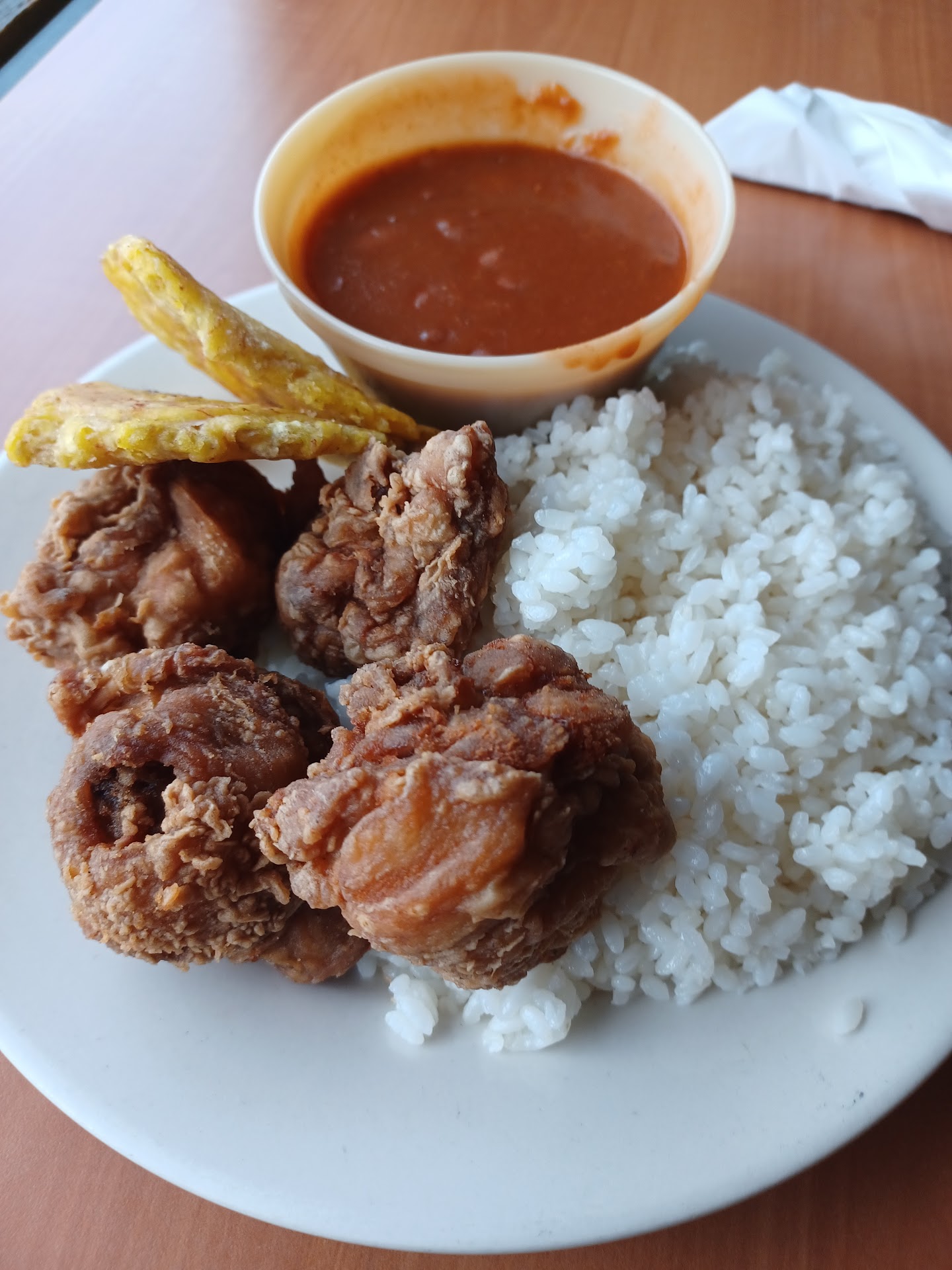 Read morePrimera vez que fui me comí una ensalada de pulpo. La ensalada tenía buen sabor pero el pulpo le faltaba cocinarlo unos minutos más. Como no fue tan grave la textura del pulpo comí, dejé un poco, pagué y me fui. Par de días más tarde decidí llevar a mi esposa. Ella pidió los chicharrón de pollo y yo una chuleta kan-kan. Cuando comencé a comer, noté que la chuleta está sabría. No tenía condimento alguno y el chicharrón estaba gomoso porque no la frieron bien. Luego de cortar y comer un poco (porque no acostumbro regresar mi comida a la cocina) la administrador del restaurante vino a mi mesa y me preguntó si todo estaba bien. No quise decir nada pero me pregunto de nuevo y le dije que la carne no tenía sabor...no la condimentaron antes de cocinarla. Ella se disculpó y me dijo que iba a hablar con la cocinera y regresaba a la mesa. Al regresar me dijo que la cocinera le dijo que todas las chuletas las cocinaban así, por si el cliente es diabético, padece de alta presión, etc., etc. Le conteste que si algún cliente padece de una enfermedad limitante, ese cliente se lo haría saber y como yo no le indique que yo padecía de ninguna enfermedad que limite mi alimentación no debieron de asumir y darme un pedazo de carne sin sabor. Nunca me ofreció cocinarse otra, no me ofreció cambiarla por otra comida, y no ofreció descontarmelo de la cuenta (cosa que no buscaba). Me dio la cuenta, la pagué, le di el 20%, y me fui....