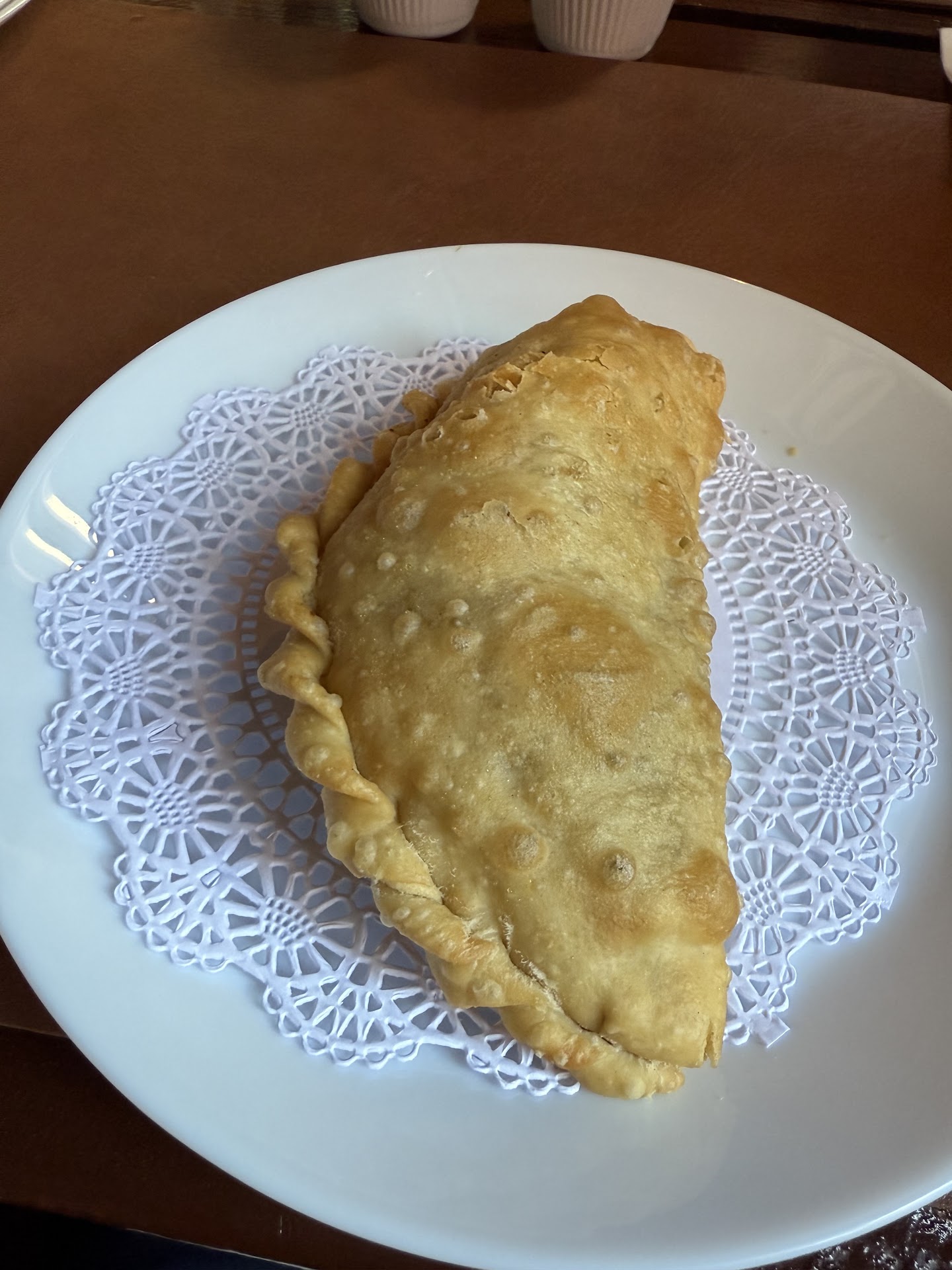 First, the food was delicious. The Cordobesa Familiar (meat platter for 4) was ample for our group - along with the sides, we were stuffed. Chicken, skirt steak, pork, and ribs, with rice and beans and plantains and grilled vegetables. We ate every bite. I could have eaten a whole dish just of the grilled cauliflower, if they would serve that - the little I had was buttery and roasted to perfection. I also thought a papaya dipping sauce was a real standout. It may have come with our appetizers (fried cheese, and beef empanadas, crunchy and not greasy) or just been provided to the table. I happily dipped empanadas and meats in it until every bit was gone.