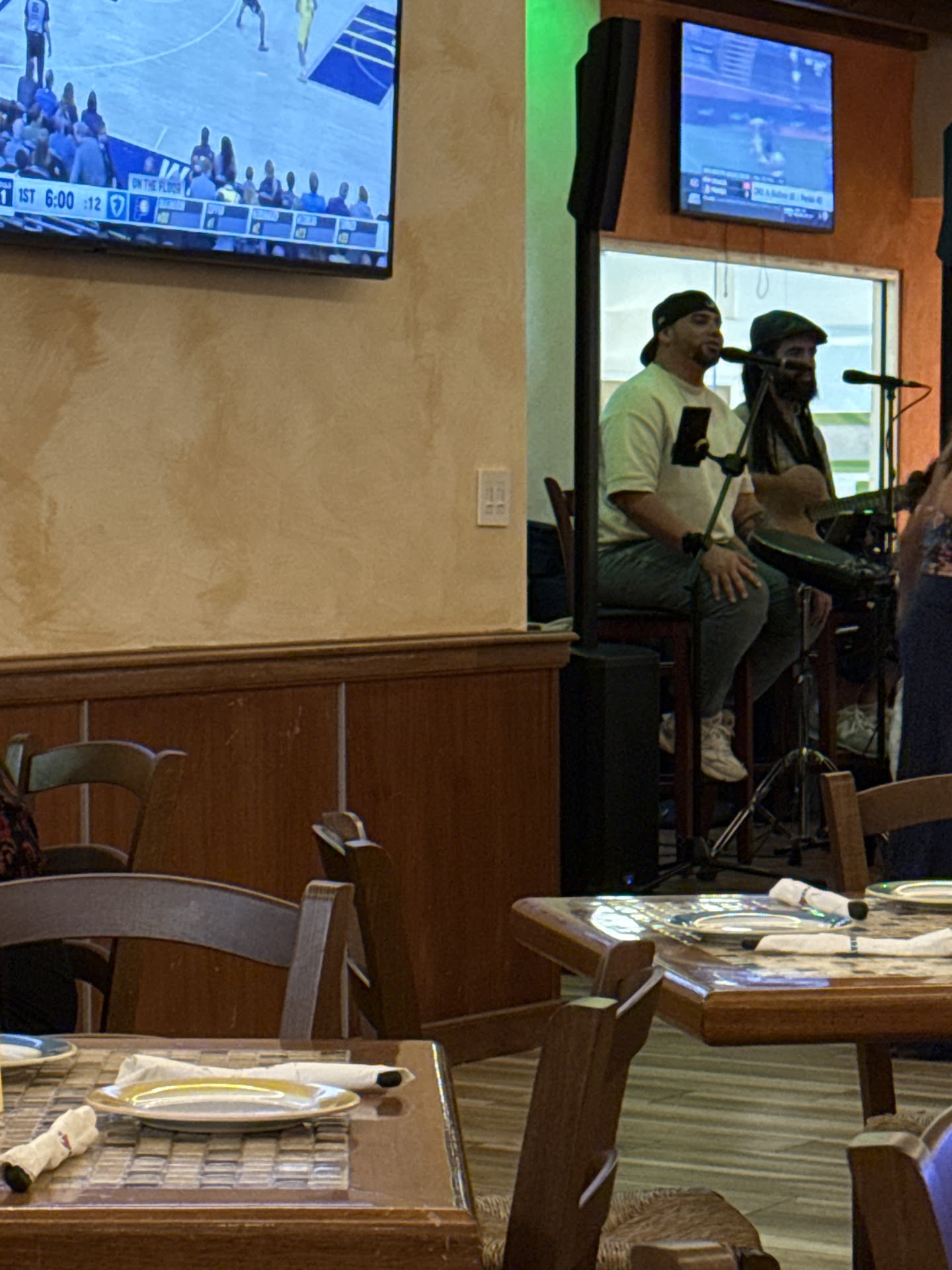 Read moreThe service, food and cleanliness was excellent! Until the music started. The volume was extremely loud to the point that the hearing alarm on my Apple Watch got activated! We asked the manager to try to get the volume lowered but the singer in the photo here just put it up higher, sadly it just started to sound like screaming cats.
