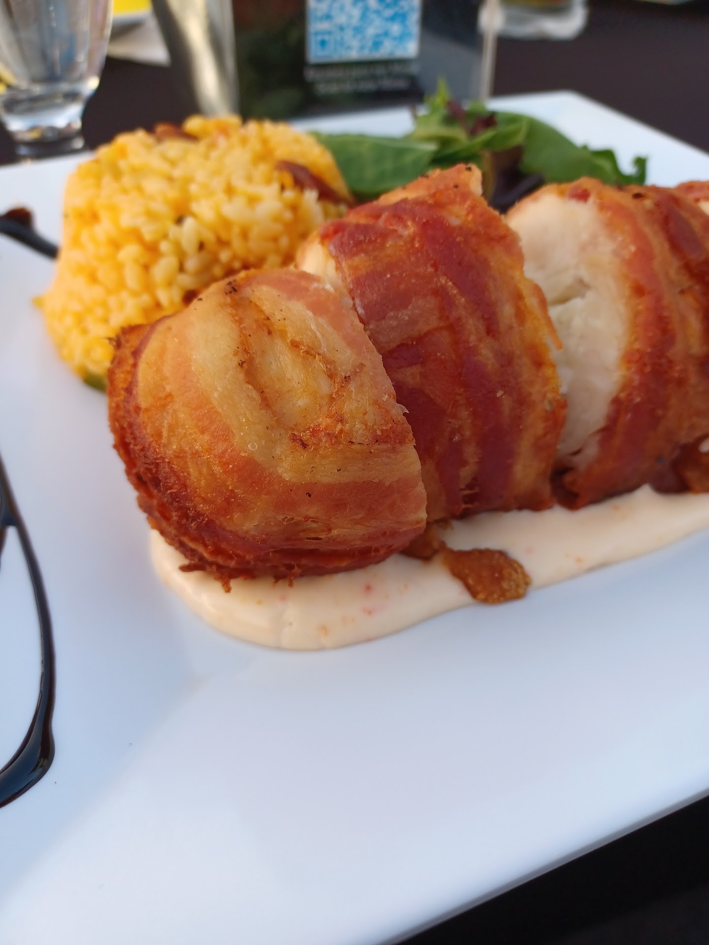 Made a reservation for outside seating at dusk (though reservations aren't necessary) and saw a beautiful sunset in the backdrop of the Ponce Cathedral. The servers were excellent, as was the food ("trifongo tricarne" and "pechuga rellena"). Specials came with soup or salad as appetizers. I really have no complaints except that I had to leave early, just as live music was arriving. Perfect place for a date, though it is not cheap. House Specialties were in the range of $18-28, tapas $6-15ish, desserts $6-8. Dinner for two might be more than a $100, so save it for a...