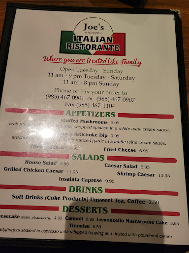 Read moreMy girlfriend and I had been hearing great things about Joe's Italian Ristorante in Ponchatoula, LA, but hadn't had the chance to try it out until tonight. Our usual spot was closed, so we decided to give Joe's a shot.