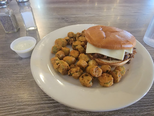 I ordered an appetizer of mountain oysters and for lunch I got a Philly cheese steak sandwich with fried okra.