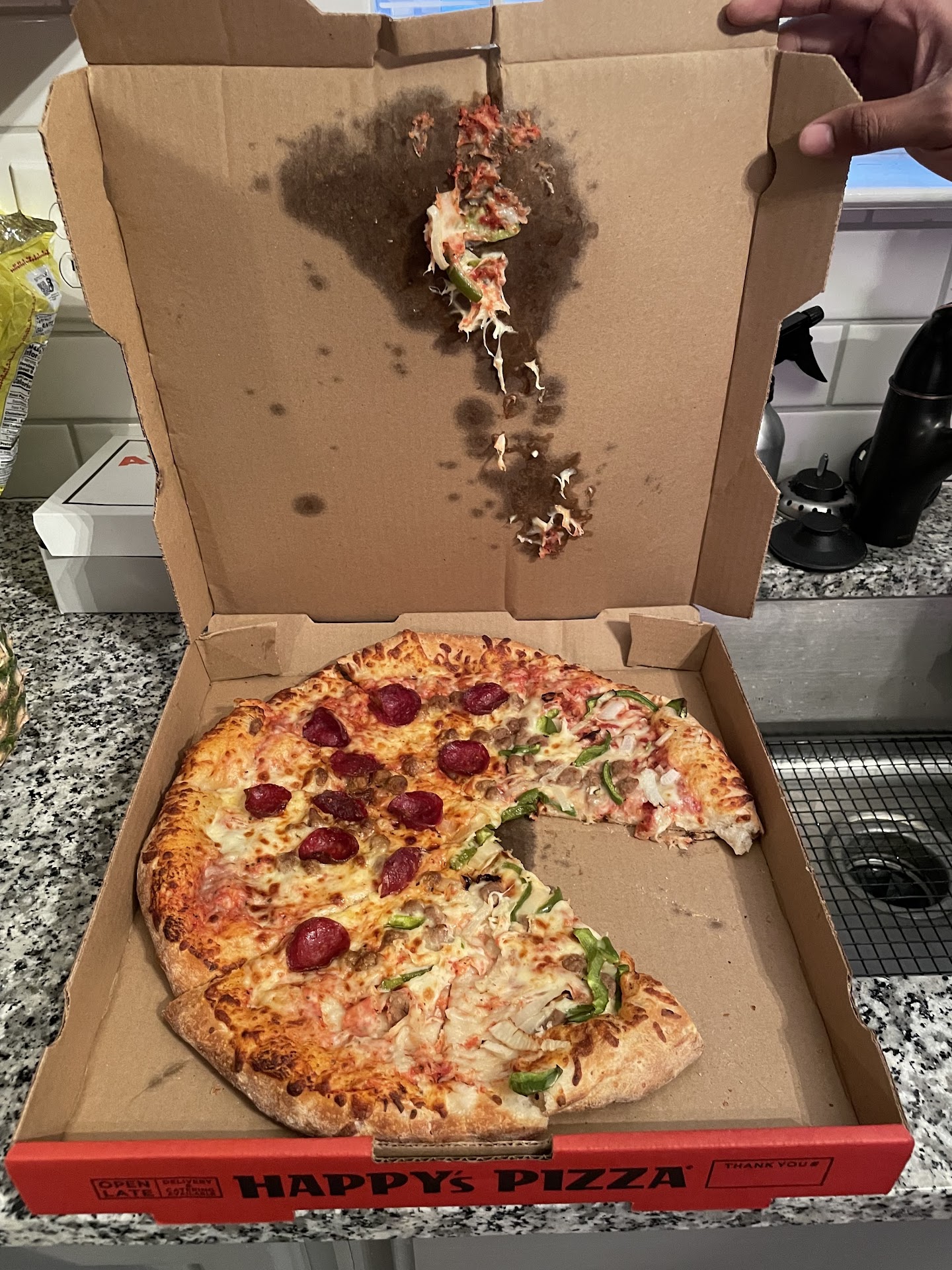 Read moreSo got a couple pizzas and some wings delivered to my home. Box was crushed and the whole pizza was stuck to the top. Eventually it fell back down and I grabbed a slice while my girl called to let happys know about the situation. Initially the woman on the phone suggested we set the pizza to the side (after my family waited over an hour to eat) and they would make a new one, have it sent out and the driver would take the other one back. We declined and asked could they make a note and give us a replacement in the future. She placed us on hold and a guy I assume was the manager got on the phone. He asks why we done want them to send one out and my girl tells him we would prefer credit seeing as it’s dinner time and we wouldn’t want to have to wait another 45 min to an hour for our meal to be prepared and while we wait to not touch the pizza so that they can take it back as evidence I guess. She told him that we would prefer the credit so that we could have dinner. He says “oh so it’s edible?”. We respond that it’s edible besides the slices that were stuck to the top. He then says how he’s not replacing a full pizza if the full pizza wasn’t ruined and that he would put a $7 credit on our account. Terrible customer service and this is a place we’ve ordered from often, long story long and we declined his offer and let him know that would not be patronizing that location in the future. Hope this helps if you’re considering this spot, they do not value...