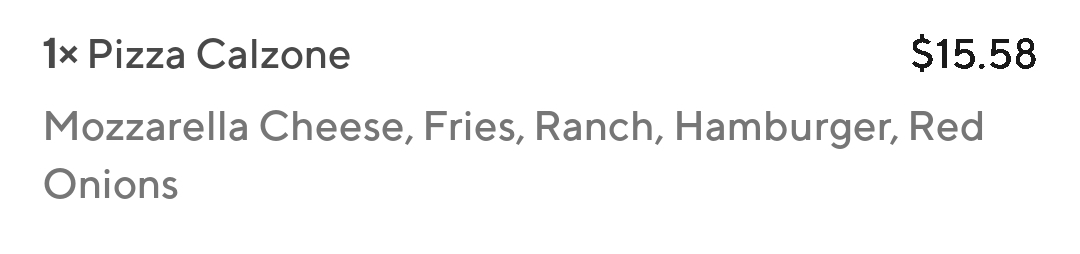 I just ordered a calzone through DoorDash and in pond, picking it up.I.Checked to make sure all my sauces were there and noticed.There was an extra sauce which would be ranch in a cup And in my head I was like.What the hell so I went in with the calzone which I had clicked ranch to be put inside of it in replacement of pizza sauce and was like.Did you guys not put ranch in the calzone?Like it had been ordered.The guy at the counter said "oh we don't put it Ranch and arcalzon, it would make a mess" to which I Replied, I did not order a cup of ranch. I ordered a calzone with ranch inside not a saucless calzone, he proceeded to tell me oh I can still put ranch in it if you want. And I looked at him and said "what the hell the ranch would be cold on a hot calzone?!" I ordered it specifically to have ranch inside and he more or less made a big fuss about. "Oh, we don't put it in. We don't put it in". I asked him for a credit. And he said he could not give me a credit.This is beyond poor customer service fifteen dollars and some odd sense for a saucless calzone
