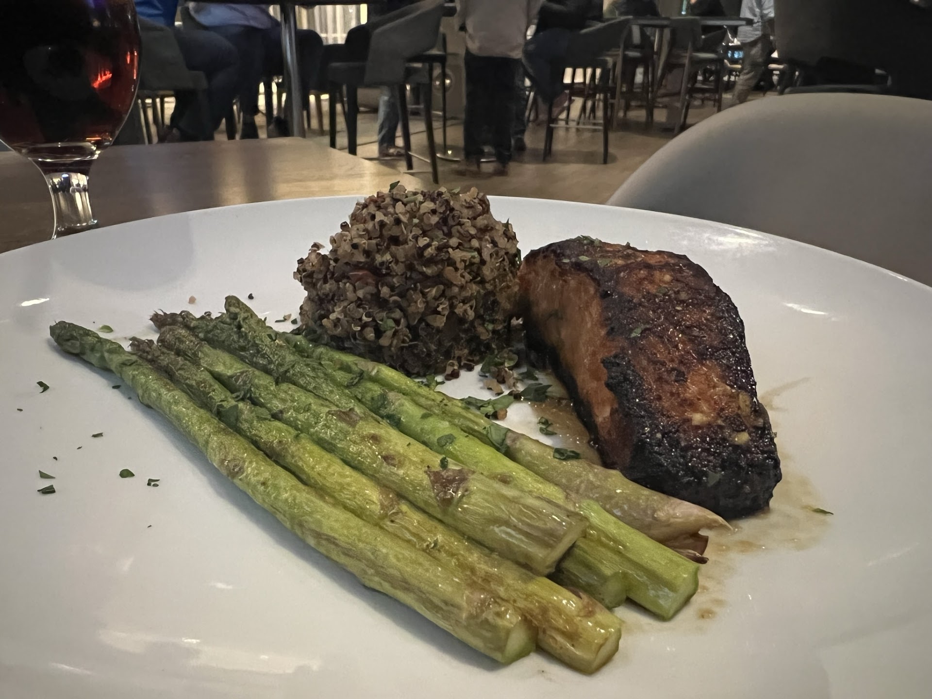The salmon was cooked beautifully, with a perfectly caramelized exterior and a moist, flaky interior. The seasoning struck a nice balance, enhancing the natural flavors of the fish without overpowering them. The accompanying quinoa added a hearty, nutty texture, pairing well with the salmon for a balanced and nutritious meal.