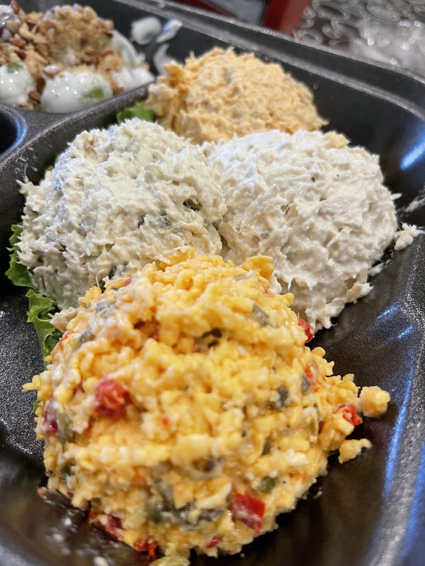 The food is delicious. I can imagine everybody having their own favorite chicken salad veriety. My favorites are Jalepeno Holly and Jamaican Me Jenny.