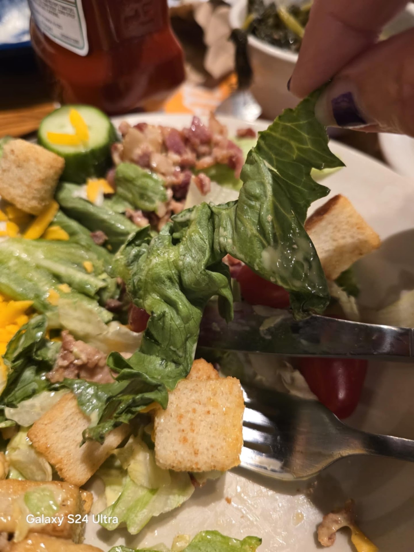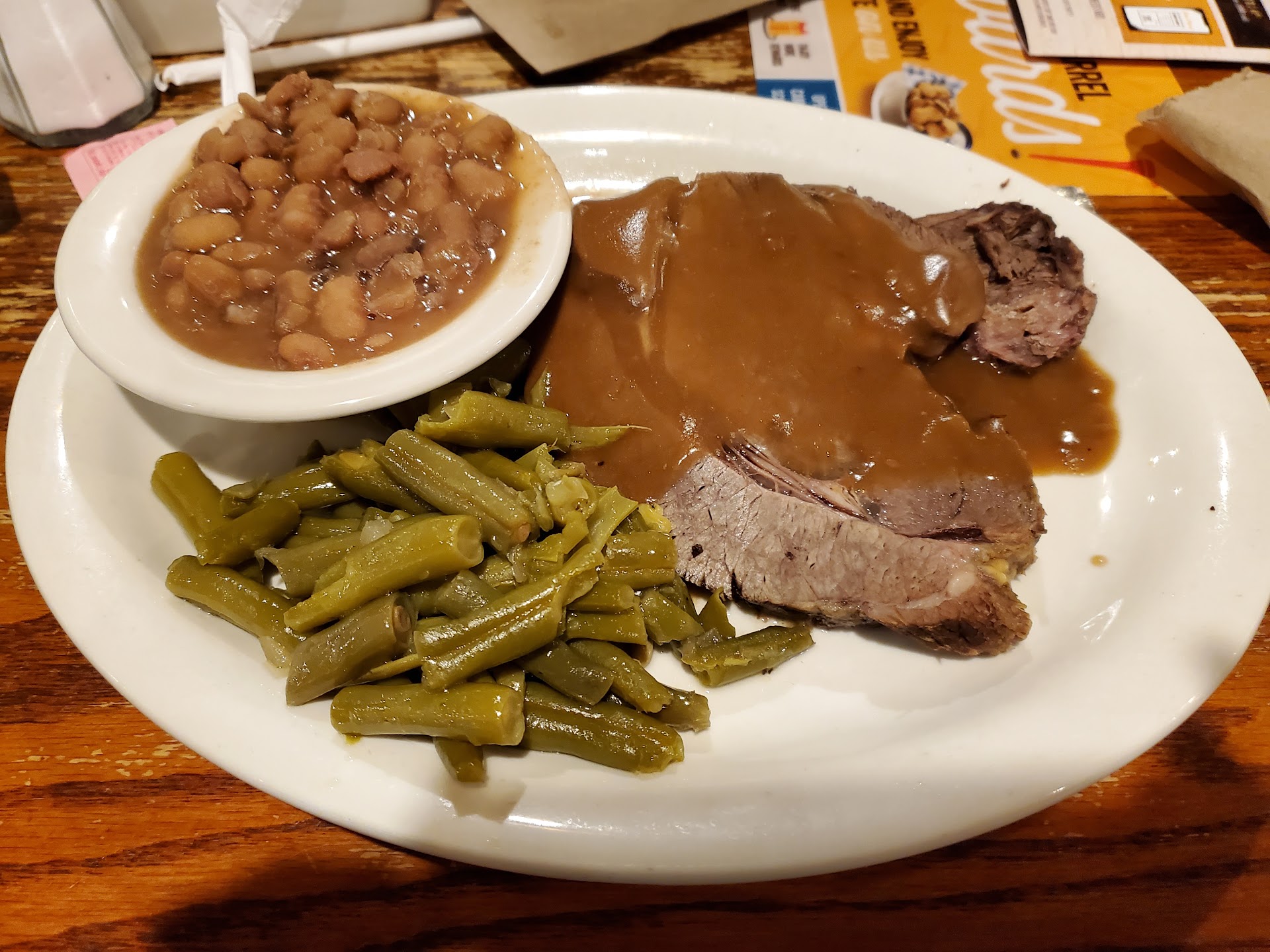 Read moreHonestly, we love Cracker Barrel, and we get sometimes restaurants have a bad night for certain customers. But there were clearly bigger issues going on at this location. One entire section of the restaurant wasn't being used, yet there was a wait to be seated. My husband ordered fried chicken on salad and was told they were out of fried chicken.. no problem, grilled it is. After a good while waiting, I started to feel sick with a hunger migraine and asked for biscuits - no problem, except they didn't tell our poor server they didn't have any biscuits so he comes back apologetically with corn muffins. I'm grateful for food; migraine recedes almost immediately. We waited probably 40 minutes to an hour for our food. Server was apologetic which was maybe the only good thing about this evening. He was 5 stars, but the service in the kitchen was abysmal so he brought my overall Service rating to 3. We were told we would be comped for the meals and we were grateful for that, as much for the gesture of understanding that this is not really cool for a restaurant to take so long. When the food came out, I was excited because it looked good!! (You'll see the pictures - no way could it be bad now, right?! Well.....) I had a big serving of roast beef, along with Pinto beans and green beans. The beans were hot (yay!), the roast beef was so tough! I only had a butter knife but it was supposed to be "fork-tender" and I've had it so many times and it usually is. Several times I had to be careful because I was afraid of the meat finally giving way to the knife and being flung across the table 😂 It was also barely warm, which honestly makes me a little nervous given their incompetence in the kitchen, and I hope I don't get sick from it. My husband's salad was alright, though smaller than other locations.