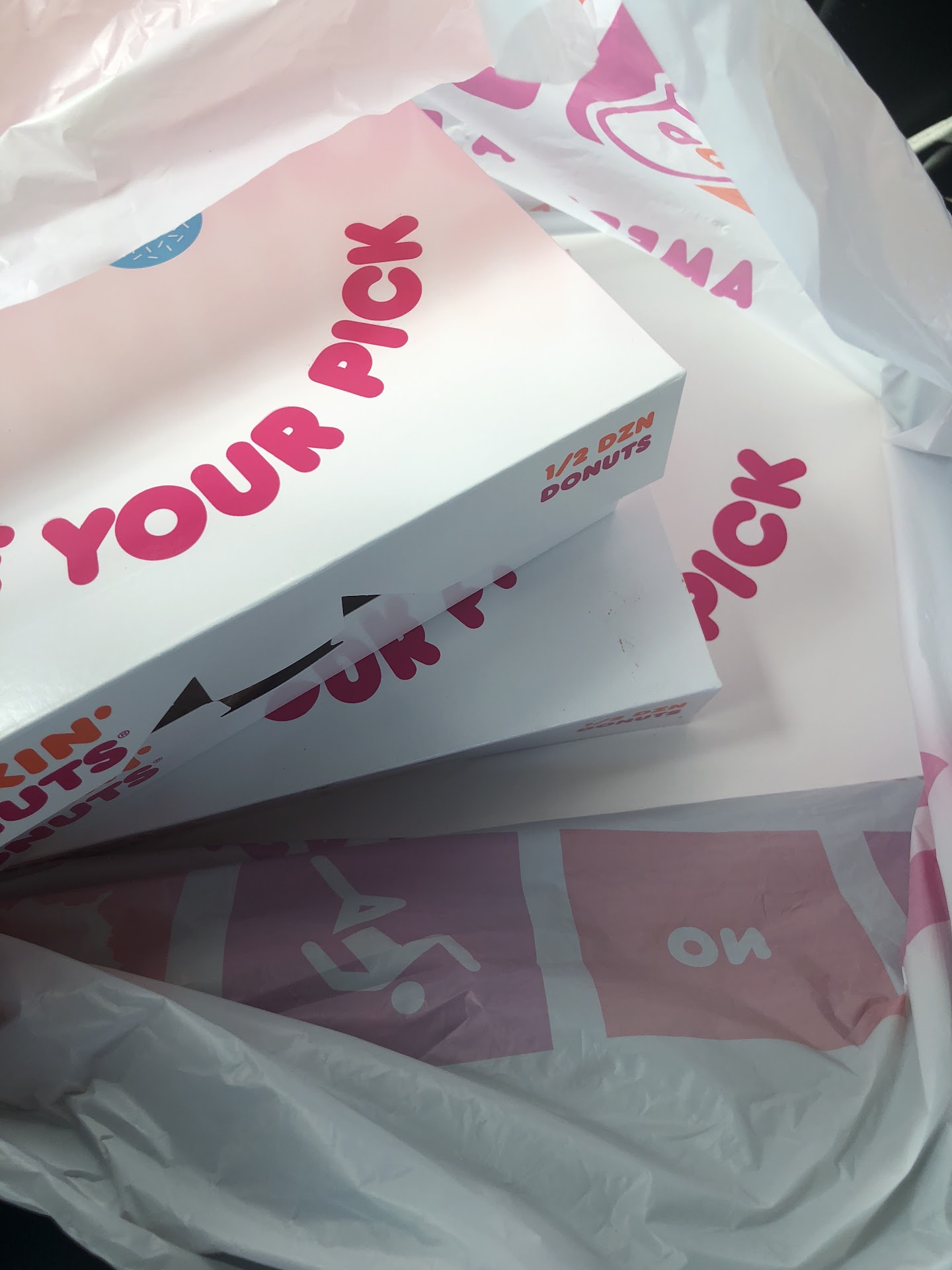 Read moreArrived at 7:20am needing to be at work 10 minutes away by 8:00am. I was 2nd in the drive through line. Ordered 2 dozen variety packs of doughnuts and 1 box of "Joe" they called it. I was told to drive to the front and wait for the box of "Joe." Thought to myself, OK, I've got more than enough time to wait a few minutes and get to work on time. By this time it was 7:25am. I waited...and waited. 15 minutes goes by and I see a kid at the counter making the same order I just asked for at the window. Mind you I already had the doughnuts, all I needed was for someone to pour coffee into a box. To make matters worse it started to pour rain. At this point I knew I had to go inside and check on my order. Its now 7:40am when I walk into the lobby and ask the kid who was remaking my order that I'm waiting on a box coffee. His reply was, "it's coming," like I was bothering him. After standing there for another 5 minutes I see that he's now bagging another 2 dozen doughnuts and starts walking around the counter as if he's taking everything to my car. I guess he didn't understand when I told him I was waiting on JUST a box of coffee. I mentioned that I only need the coffee. He stops and looks at me like I've got 2 heads. Finally a manager speaks up from the back of the counter and tells him, "Those doughnuts are for another order," I repeated, "Yea, I'm just waiting on the coffee bud." This is the 3rd time I've said it. 4 if you count when I ordered at the window. So nows it's 7:45am pouring rain and I've got 15 minutes to get to work at 8am. On a normal day I could have made it there maybe 1 or 2 minutes in time to clock in; however, with the rain I knew it would be impossible. So, I called my office manager and explained the situation. I ended up having to use PTO as to not have points counted against me for being late. To top all this off, I parked at 8:01am and was trying to bring coffee and doughnuts into the office for my coworkers. To show my appreciation of their hardwork during this crazy COVID climate we've been. Thankfully, I was able to drop off the coffee and doughnuts, but the added insult of having to use my personal PTO because of some lack luster employee at Dunkin Doughnuts is ridiculous. I will NOT be visiting this establishment again. And I recommend whoever reads this takes the same stance. At minimum they really need to work on their communication skills. Maybe having a cup of "Joe" before dealing with...