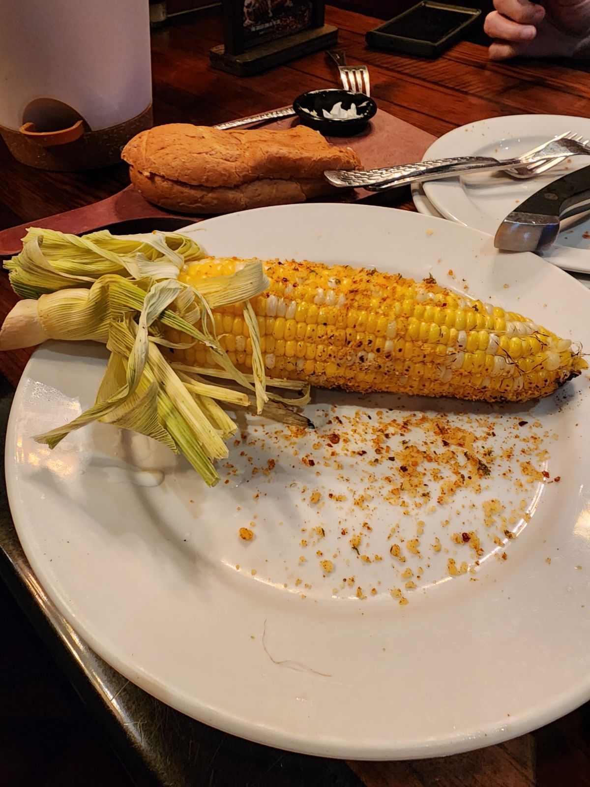 We arrived at opening time as usual, so there would be minimal waiting time to be seated. There’s plenty of parking with multiple handicap spaces. There is a handicap entrance for those who need one. The entranceway can get crowded quickly. They do have limited seating while you wait next to the entrance. The restaurant has a Western theme with country music playing. The music is loud enough to hear but not enough to be annoying when talking. There are multiple TVs on the walls. The theme reminds me of a cowboy dining hall. The restaurant is clean and well-kept. It has a family-friendly atmosphere. We didn't have to wait to enter and be seated. They opened right on time. We were greeted with a welcoming smile and a hardy hello. Sofia, our server, arrived quickly at our table and took our drink orders. Sophia was accurate with our order and consistently checked to ensure we were satisfied with the food and service. She made us feel like we were important. I ordered the 12oz parmesan-crusted chicken. It was flavorful, juicy, and very tender. The melted parmesan cheese on top was soft and creamy, with a hint of crusting from the heat. The two chicken breasts were sufficient in size to make two meals. The street corn is wonderful. It’s juicy with plump kernels. Between the butter and the seasoning, it’s an explosion of flavor every time a kernel pops. The broccoli was a little soft but not mushy. The peach tea had a great peach flavor but was high in calories. I can't wait to return to eat again and see Sofia. She makes every visit fun...