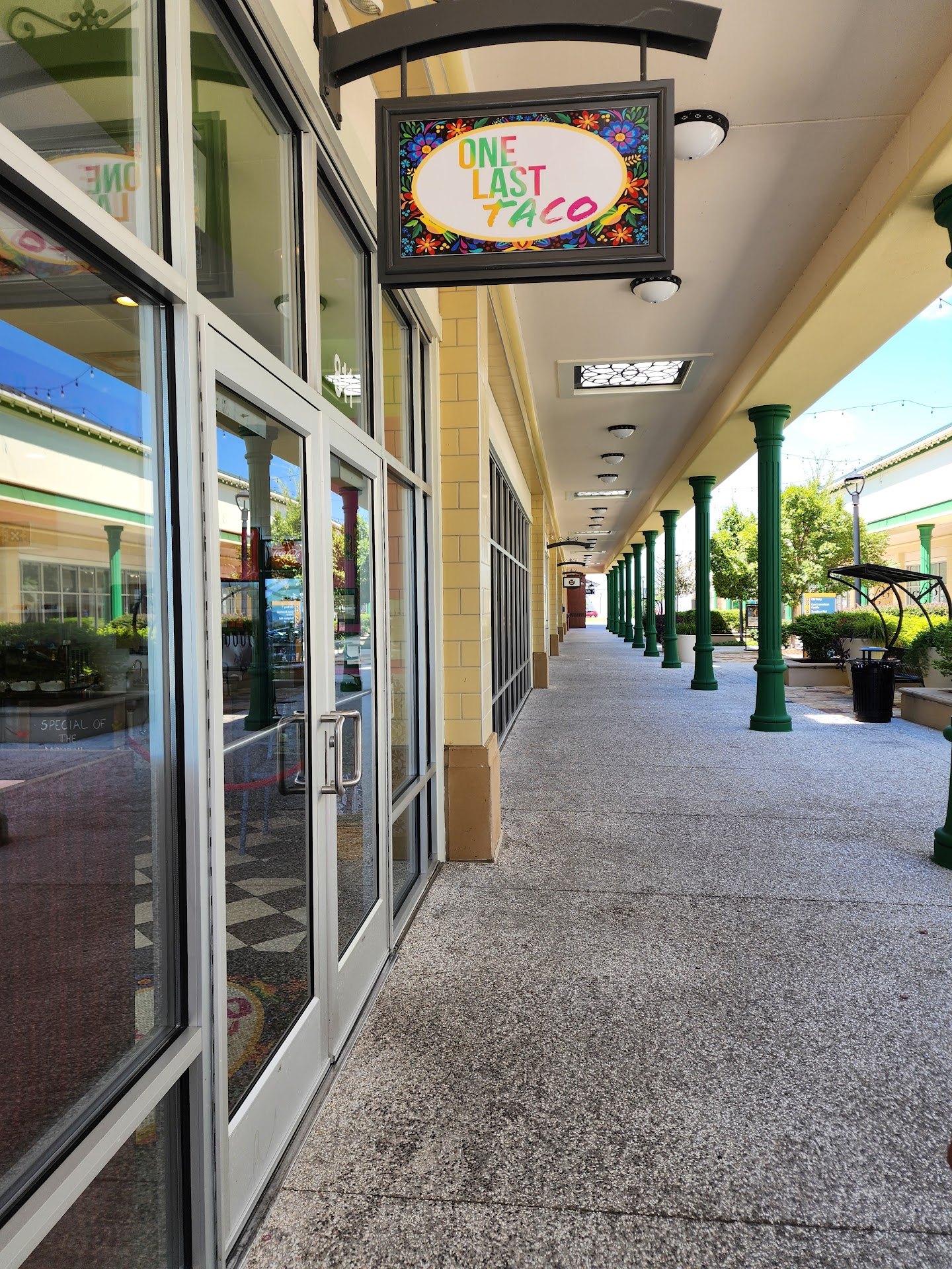 Read moreTucked away in the Tanger Outlets near the playground and just steps from Dave & Busterâs, One Last Taco is a true hidden gem that most shoppers sadly seem to overlook. But donât be one of them. Despite their menu being overwhelmingly meat-focused, the few vegetarian options they offer are an absolute treasure. As a vegetarian, itâs tough finding tacos that truly hit the spot without hitting the wallet too hardâbut these do both effortlessly. Each bite of their veg tacos feels like a little slice of heaven. Iâve even stopped by just for a quick bite without doing any shopping at all! The quality, flavor, and freshness are all top-notch. If their veggie options are this good, I can only imagine how phenomenal their meat tacos must be. Highly recommend to anyone craving a flavorful, satisfying taco experienceâmeat...