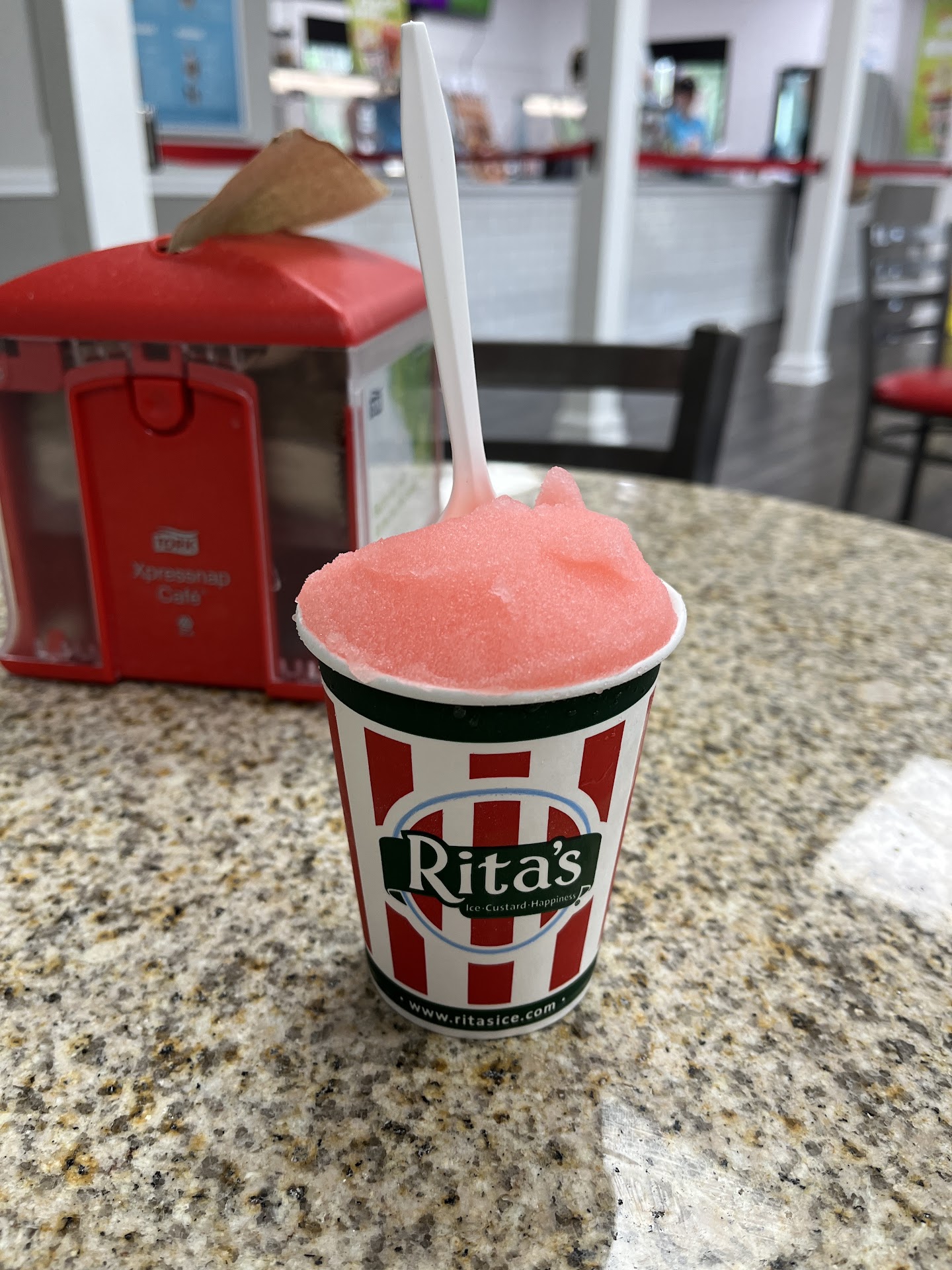 Fair warning, the parking here is cramped and limited. This is the perfect place to go for a cool-down after getting sunburned at the beachšš if you don't know what Frozen Custard is, it's kind of like soft serve ice cream except thicker and way smootherš¦šš¤ā„ļøš¦Whenever I visit a Rita's, I always order their gelati, which is basically layers of frozen custard and italian ice. You can choose up to 2 different flavors of Italian ice to layer up; which I always end up choosing cherry and mango šš„ good stuff. *Side note: if you choose to chill in their outdoor seating area, make sure you're not sitting on top of a fire ant hill, those suckers...
