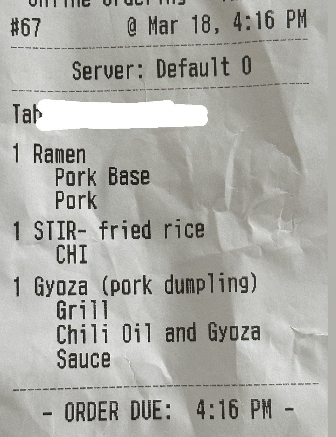 Read moreEat at this place twice a month. And it has just gotten worse every time we come back. I this is the third time we got horrible experience first time we thought give them more chance when they forget the broth to my noodles. then second time they forgot to add the sauce to the gyoza and the fried rice was bland . third time as you see we specifically pit the note so they dont forget again. every gyoza always comes with the dipping sauce somehow they always mess that up so we put a note. gyoza soy sauce. not still forgot even though its showing in their receipt. then to top it off the fried rice is horrible there are a bunch of white rice sticking together and not mixed well and its sooooo bland no taste whatsoever it was like eating regular white rice with under seasoned chicken and they didnt give enough pork borth to the ramen which is very inconsistent every time we order it. we didnt even order during busy time.