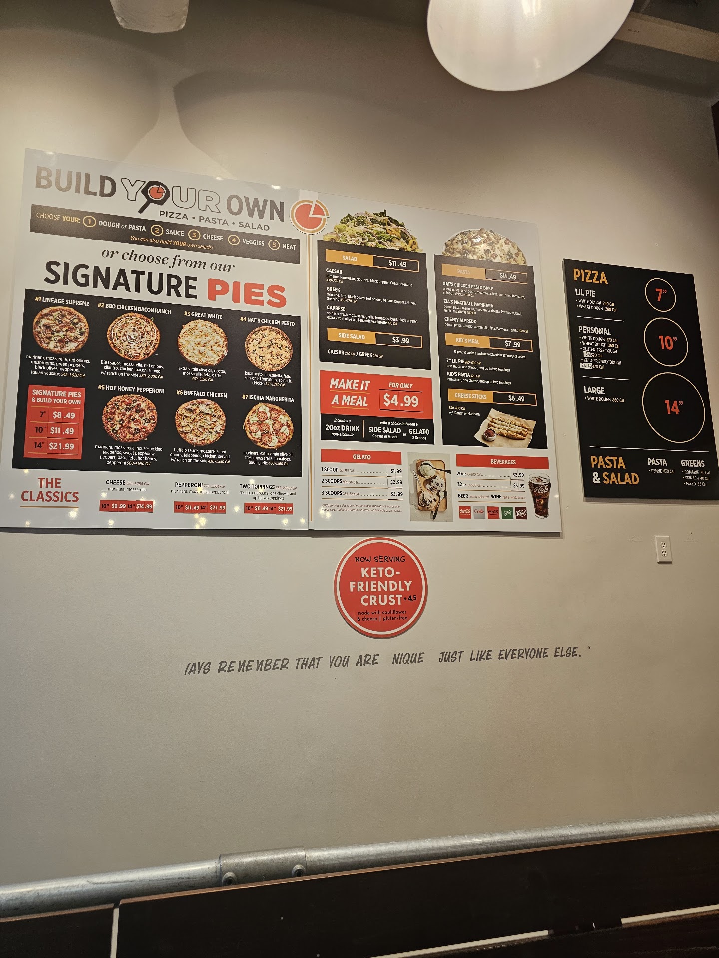 Ok, so usually I take a photo of my food when I get it so I can post it, however it smelled and looked so amazing that I literally forgot to take the picture! All I can say about this place is WOW! MICHAEL was cooked that prepared my 7-in great white pizza on wheat crust, š¤¤š¤¤š¤¤ it was sooooooo good! Because I got a 7 inch pizza it comes with one scoop of gelato and a small drink for like 8 bucks can you believe that! The pizza was so crisp and crunchy but not too card! The crust was dusted with cornmeal was just add another layer of crunch/texture. I thought it would be dry because it didn't really have a sauce, however the way the ricotta mozzarella and feta melted together and blended with olive oil it was nice and creamy and the garlic that was on a piece of wasn't over there and it didn't overpower the other flavors that were dancing in my mouth! I'm not going to lie the pizza looks a little plain so I wasn't expecting it to be this time bomb of flavor! So shout out to Michael, thank you so much for giving me, my friend and my niece an amazing first time experience at your pie! We will definitely be back! Oh I almost forgot that gelato! š¤¤š¤¤š¤¤š¤¤š¤¤ It wonderful, I got the blood orange ( it has a nice sweet tangy taste to it but not too tangy) my friend had the Butterfinger gelato which was a party in your mouth and it wasn't too sweet and of course my niece went with a classic chocolate! She enjoyed it so much and made her do her happy dance and then she forced me to buy her another scoop! š¤¦š¾āāļø Just kidding, I offered to buy her one since she wouldn't stop licking the container that hers...