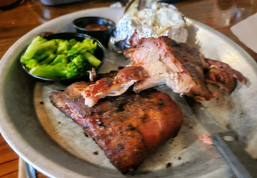 Read moreI got the sampler platter and my wife had the dirty sirloin. Our server was friendly and knowledgeable and quick to refill our drinks but not a constant presence which can be annoying. Little bit of a wait time for our food but they were fairly busy so no biggie. We had fried pickle planks as an appetizer an cheddar biscuits and hushpuppies to keep us sated as we waited. On my platter I must say, there was a frog leg, I don't have much experience with frog legs, only having eaten them at the Chinese restaurant in town before. But, I hesitatingly tried it....holy hell! That damn frog leg was one of the best things I've ever put in my mouth! It had been marinated in something good and then battered an deep fried an was just...amazing. The rest of the platter was damn good too. I tried my wife's steak as well, a lol bit salty but had a damn fine taste and was cooked perfect. We will...