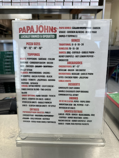 Read moreI just wanted to say..I have never had Papa Johns pizza till tonight..and it is delicious !! I also want to brag on the nice young man that delivered for us,I am sorry I didnt get his name but we ordered from motel 6..room 111 so he knows who he is..our food arrived way before it was expected..it was hot and delicious.He was very polite and well mannered.Any young person that takes his job serious these days is a star employee..and he should be apreciated..so thankyou for a delicious hot meal..youngman and the employees that prepared our...