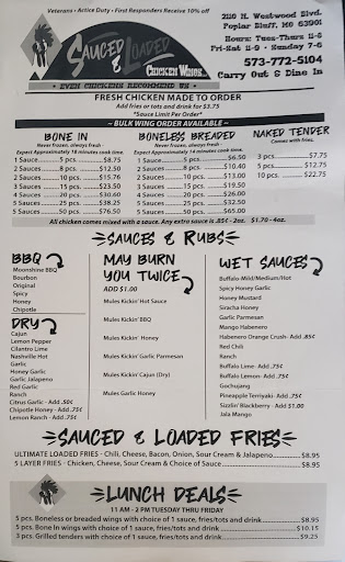 Look at the size of these wings!! They have a special right now... 5 wings, fries and a drink for $8.95. WELL WORTH IT!! The size of these are like 3 times the size of a competitor. Very impressed!! They were amazing wings!! This place needs to be a staple. The people there are so nice and considerate. Treat you like family when you come in. My family and I will definitely be back!! IF YOU HAVEN'T TRIED SAUCED AND LOADED....YOU'RE MISSING OUT....GO CHECK THEM OUT! Definitely worth it!! Keep up the good work!! You have amazing food and people there!...
