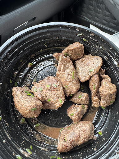 The onion tanglers came out first, and I have mixed feelings on them. The portion size is very meager- the serving plate, a "hot plate," was more than half empty space. With that said- they are seasoned well and the sauce they come with smoky and creamy. It's a good paring. Only real complaint here is the size.