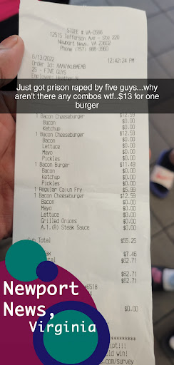 Read morePlaced a doordash order thru this location. The bag was sealed differently than normal, so I was not surprised to see that one of my sandwiches was missing. I called and spoke to Robert. I let him know a sandwich was missing, in hopes of just getting a replacement. He proceeded to argue with me that he had bagged the order himself and it must have been the doordasher who took it. I returned what was left of my order to the store, not feeling safe to eat food from an order that had been tampered with. I was not offered a replacement order, a refund, or even an apology! Doordash also refused to refund my order. I've been a loyal Five Guys customer since getting too much old food from McDonalds. Now Five Guys is as bad as McDonalds - just another crappy fast food restaurant with rude employees scamming with Doordashers to screw over their customers. Five Guys burgers are tasty but not good enough to put up with this mess! I WILL NEVER GO BACK TO FIVE GUYS! They have gotten their last...
