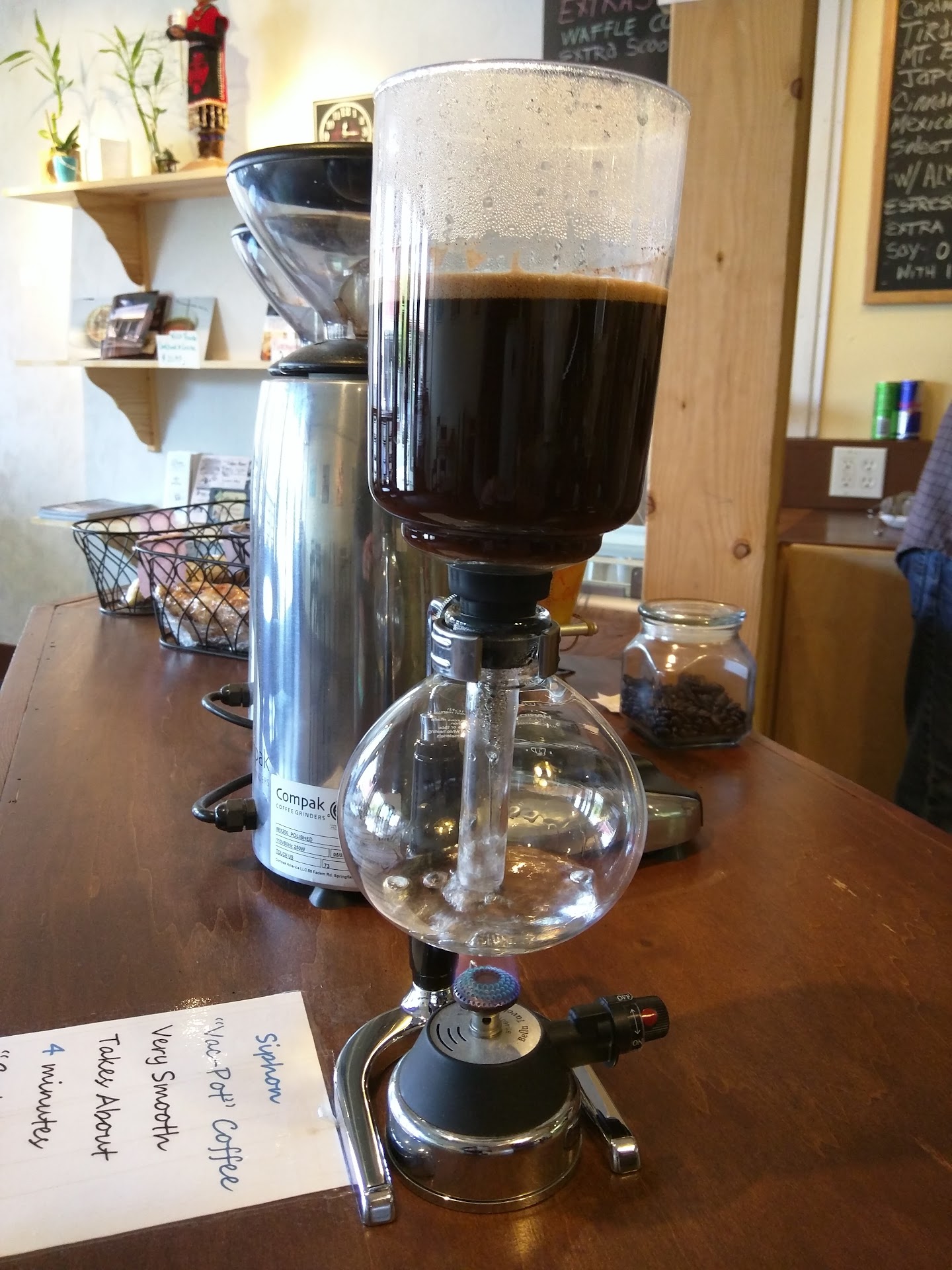 Read moreWe're serious espresso drinkers, and resigned to seldom finding good espresso outside of the cities of Seattle or Portland (and even then only a few places truly brew good espresso.) So on a recent road trip to Port Angeles, imagine our surprise at an absolutely perfectly executed espresso Machiatto (Seattle-style, like a mini latte,) out of a nicely maintained La Marzocco at a little downtown coffee shop called Easy Street Coffee. While we find a lot of good roasters on the road, final brewers seldom keep their equipment clean and pull correctly balanced shots. Easy Street does a perfect job of bringing the final cup to the customer - and within our short overnighter we stopped in three times. No glitz, just a simple downtown neighborhood shop - but a welcomed oasis in a coffee wilderness. Kudos to Easy...