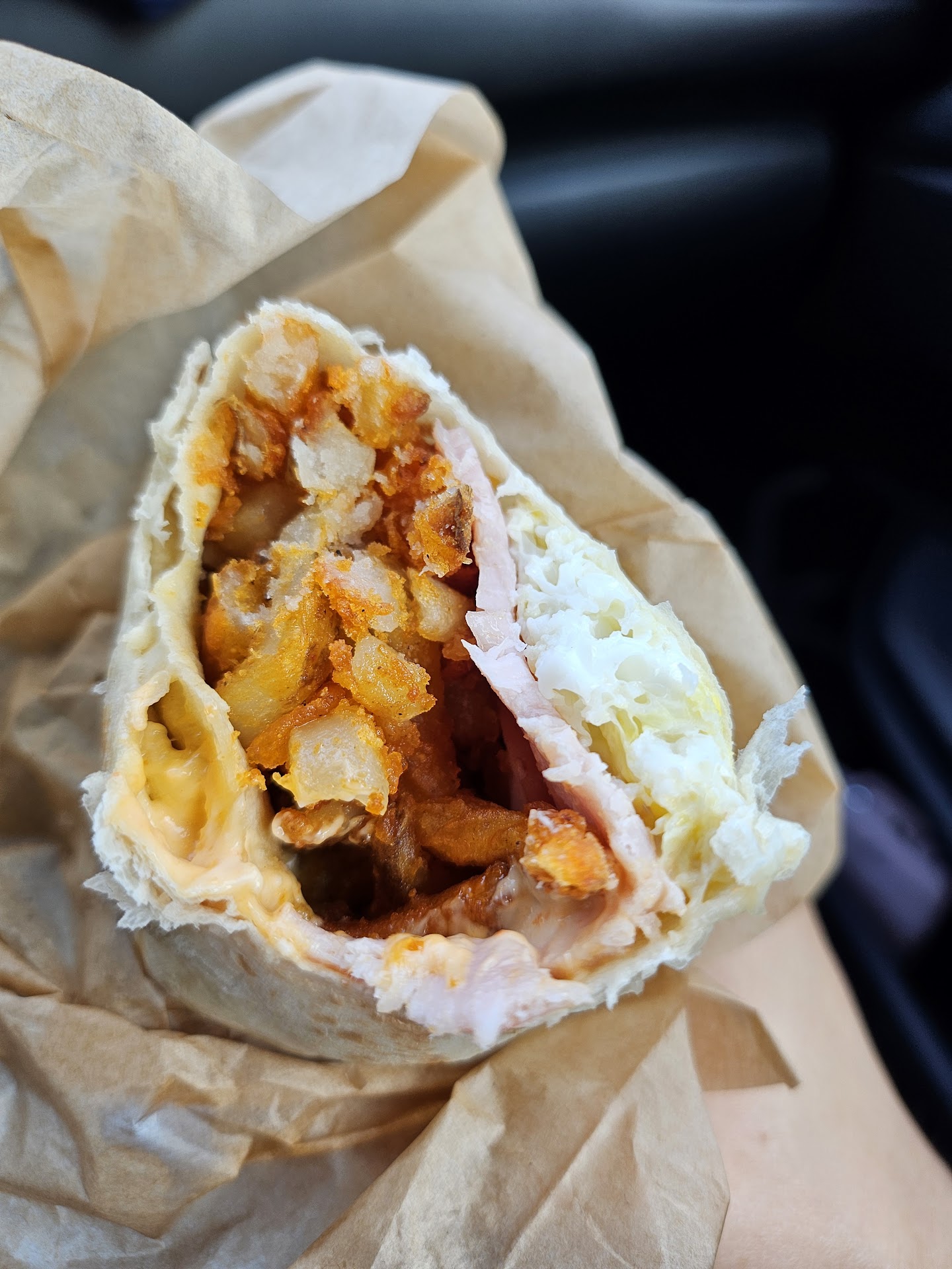 Great space and overall energy and atmosphere. I showed up during a weekday morning rush and waited 10-20min to order. Burritos at the time were all pre-made and already included cheese, which I canāt eat, so I ordered a breakfast sandwich with bacon on a croissant, and it was delicious.