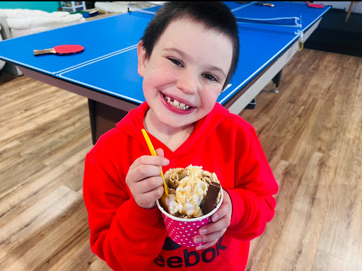 Family Friendly Atmosphere! Great place to bring kids. There is a room filled with all sorts of games, board games, and coloring books. Great Place to relax and hang out, relax with friends and have a good time. They have rolled ice cream, which I reccommend the snickerdoodle (YUM). My daughter got the strawberry shortcake rolled ice cream and it was so good. My Son got a Mix in Drink with shark gummies and he said it was so delish! My friend also got the blueberry waffle rolled up ice cream and I'm getting that one next time I go! They also have freeze dried candy and my friends kids stalked up on that.