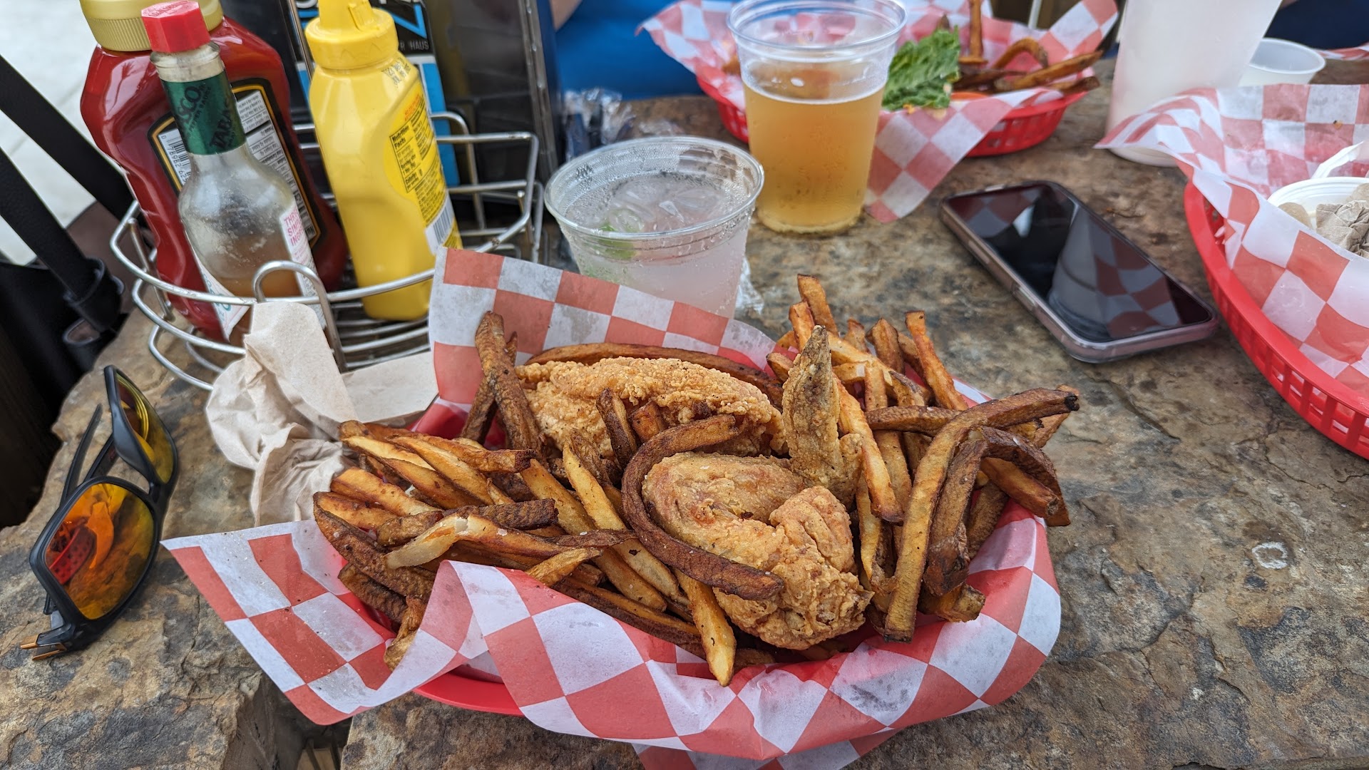 I want to start by saying.. we've visited this spot before. This place has alot of potential. However, today's visit was extremely upsetting and disgusting. I ordered my food at the container. As i stood there waiting for my food the person after me was ordering and was told it would be about a 45 min wait due to the kitchen being "backed up". I'm about 5 min in still waiting on my food outside, and i see multiple (at least 4 males/cooks) come in and out of the kitchen area to the back/outdoor area and they all were passing around what looked like a joint (by the way they were holding it) and by the way it smelled it confirmed to me that they were smoking weed. I also saw 1 gentleman drinking a beer. (Green glass bottle) Allll this is going on for about a good 10 minutes. All of them going in and out from kitchen to the back side of the building taking turns hitting the joint. So this was obvious that the kitchen was "backed up" because they were too busy smoking and drinking while on the job! Ultimately what they do, i could care less! But you are handling my food! And if you're going in and out of the kitchen, I'm almost 100% sure you are not washing your hands! Also, one of the cooks sneezed right on the palm of his hand and went straight back to cooking!!! After this i didn't want to cause a scene as they had a pretty long line and I felt honestly more embarrassed to ask for a refund to be denied and embarrassed, although i did nothing wrong but it was a bunch of young guys working. So if the owner sees this review. I hope you can revise with your employees, primarily the cooks as this was very unsanitary. Also, i want to make note, while I was ordering, althogh, it was not anything the bartender did wrong, but the salt he uses to put on the rim, was open and flies sat there for a...