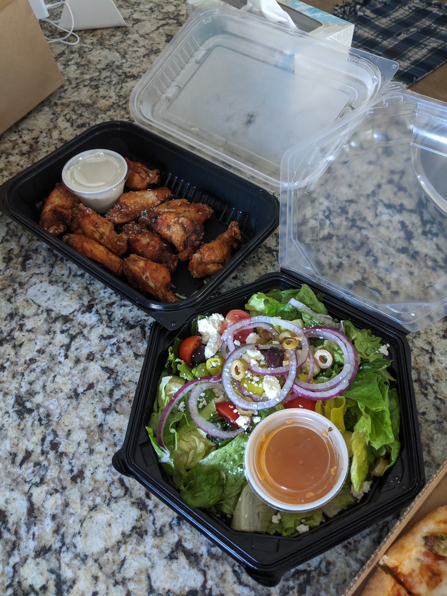 The order was placed and paid for, I would say no later than 8:40. We went outside to wait, I got nervous when it was close to 9 and still no “phone call”, that order was ready, so I went back inside to follow up. They hadn’t even gotten to my order yet. I was told it would be fine to wait outside and I’d get a “phone call.” We waited another 15 minutes and my grandsons came back in to wait with me. THEY got tired of waiting after another 5 minutes, and left. Keep in mind, as I’m waiting at a table, probable every single server walked by me, for 21 minutes and no one said a word, asked me how I was, had I been helped, nada, zilch. At 9:30, I stopped a server and told her I had been waiting almost an hour for my pizzas and salad. She walked away and came back 2.5 seconds later, with not hot and fresh pizzas, who knows how long they were sitting under the hot lamp.