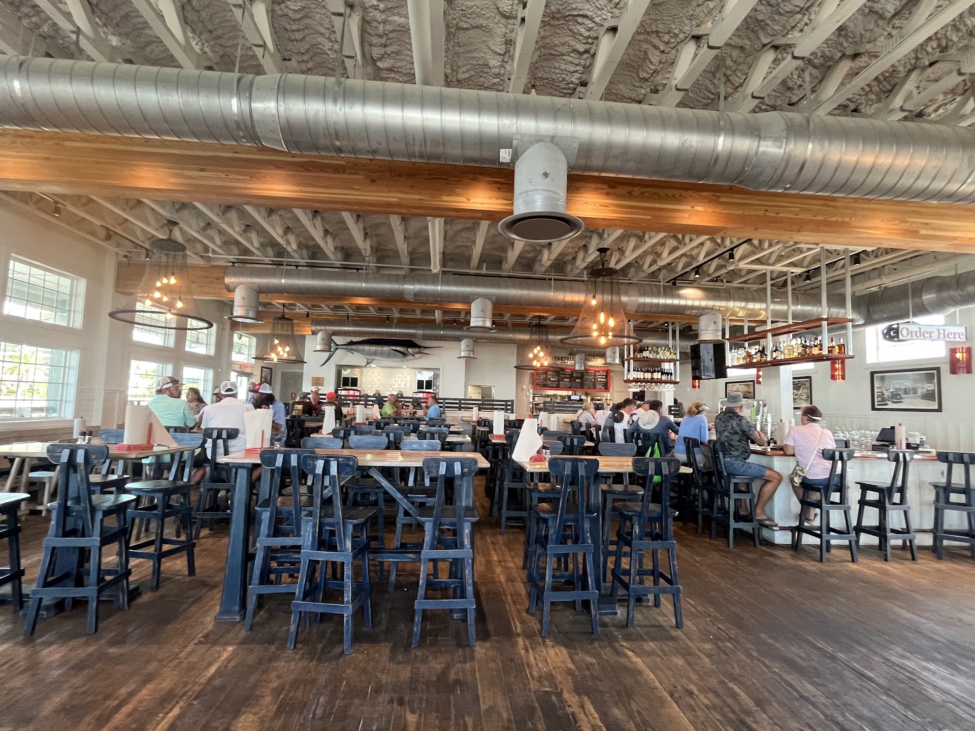 Start to finish just a phenomenal experience. We were outside chatting about the menu because a long line had formed and we were in no hurry. Talking amongst ourself about what looked good... a friendly guy kinda popped in on us and gave his vote what we would like. We started to chat and realized he was one of the owners just leaving for the day. He was so kind and really took time to answer our questions. Made us feel like old friends!! He made the menu just come to life before is after was so excited to have my mother in law try HIS amazing pina colada. He had to see her expression... lol... she is always in search of the best pina colada... and swears by her fav place in Galveston... but THIs one put a HUGE smile on her face!! Best one in the RockPort/Port A area!! And she has been searching!! (But it did come w a huge price... 2 coladas and a Bloody Mary was over $50!) my Bloody Mary was spiced to perfection and so good, but its my hope that next time we come to town there is a nice crispy piece of bacon in there too....LOL, but that's just me...Now onto the food... we got the seared blackened tuna bowl - so refreshing... and yes the Siracha is dairy free... family got the mahi mahi BLT and it was so beautiful and delicious, and the Shrimp burger ( which is not what you think at all.... It's basically a shrimp sandwich w a friend green tomato, which was good but only had 4 shrimp on it... get the shrimp poboy if you really want more shrimp. The bacon hush puppies were yummy as well. Oh man and don't forget those fries... those were the most addicting spiced to perfection fries Ever! And such a heaping helping!! Hi praises goto Vy Vy! She took our order and was just a bright ray of sunshine. So helpful and friendly and just like Michael, she spoke to us w such ease like she knew us as regulars!! Michael mentioned the new upstairs restaurant soon to open next year and we can't wait to come back for a visit!! We saw some not so great reviews and still went for it... glad we did! Please note.... If you want a FULL service experience... this is not the place to come. You must go to order at a counter, get your own drinks, silverware, condiments, everything... BUT with that being said...it was no big deal for us! The view was so great and the weather was so pleasant! For sure our new fav...