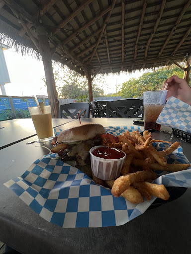 What a great little gem amongst a sea of little diners and restaurants. We hunted that day for a place that looked fun. Was dog friendly (on the outside patio) had good food and a great atmosphere. After driving by it twice, decided to give it a shot. We ended up staying all afternoon. I would have rated the service higher, but only because you sort of have to serve yourself. You must go to the bar and oder/ pay for drinks and food. At least they bring it to you when it's ready. Lol. We ordered some unusual specials because we saw a lot of patrons playing it safe. A couple dishes caught my eye. First a grilled Ahi Tuna Pita with a garlic Aioli sauce. The tuna was melt in your mouth and cooked absolutely perfectly. Shockingly perfect. I will order fresh sea food anytime they offer it there. Unbelievable great dish for such a little diner/bar. I also had the Pablano and Aioli grilled Cheese burger. We also had the jalapeño cheddar bites which were so good. I believe they were home made. Who cares if they were frozen, they were delicious. My burger was a glorified smashburger but the Pablano and Aioli took it to new heights. There is some talent in that modest kitchen. The tiki bar theme and ice cold beer on tap was precisely what we wanted. What we didn't expect was the fair prices and the super friendly staff. There was an unstoppable good mood and good juju in the air. The rash of golf cart traffic was the only annoyance. The parking is very limited and it seemed like it was only a matter of time before a golf cart hit our car. I will definitely be back. It will be a for sure go to during a Port Austin weekend. Next time I will be trying some of the staple menu items and I'll park further away! But I will definitely return. The management, not sure if she was the owner was so much fun to watch. Even when overwhelmed by numerous drink requests and specialty cocktails, she went out of her way to serve everyone and let those in line KNOW that they would be receiving great service when it was their turn. There was a lot of young staff. Don't expect five star service. But you will enjoy your time for a good price and interact with great people. Thanks for being dog friendly . 👏👏👏👏 I give you four out of five claps for a...