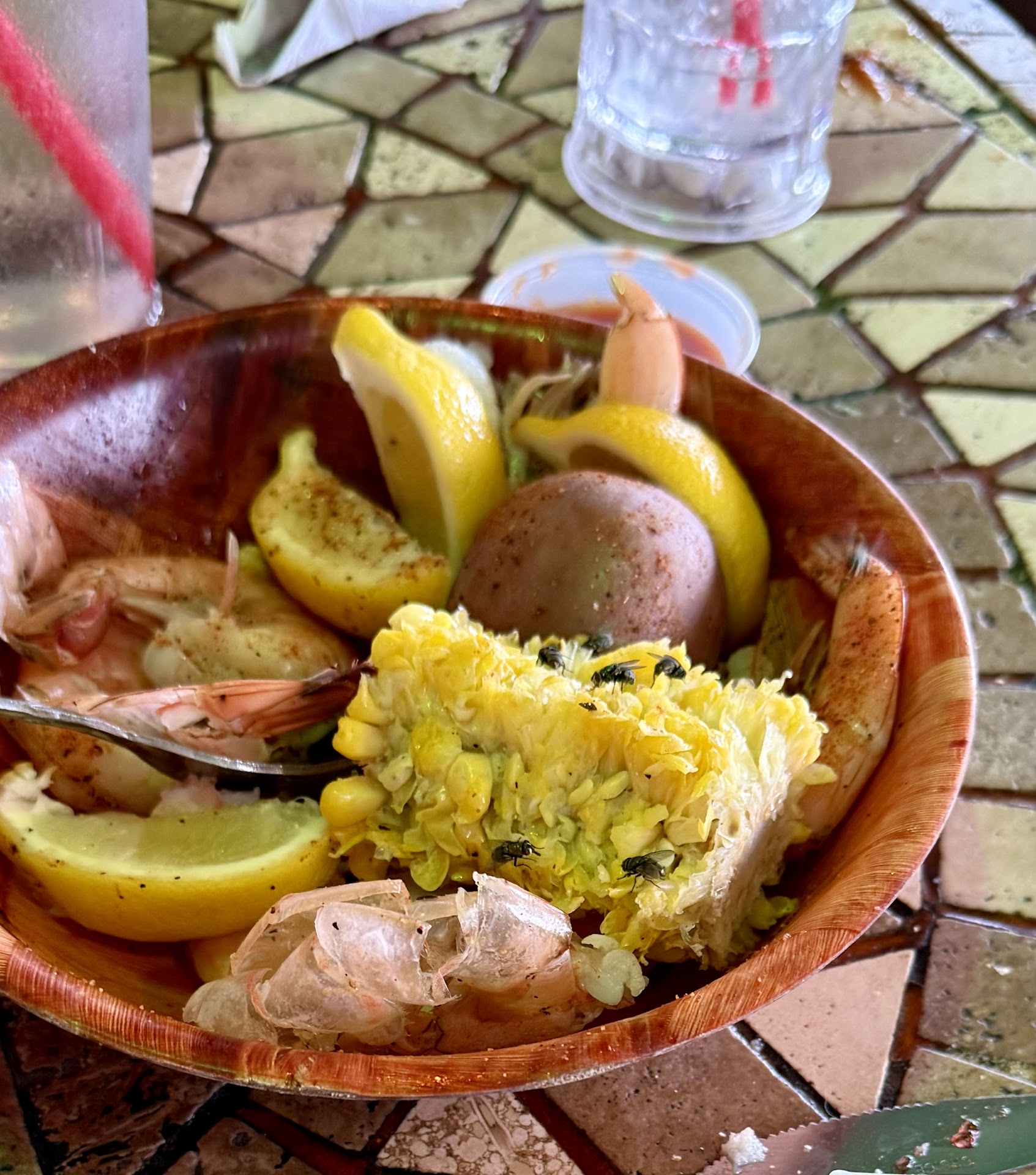 The biggest issue with this place are the flies. They have those little fly fans on the tables but they are of little use. They descended on our food, the queso and everything. They were in the queso and it just ruined the meal. My wife found one crawling in her salad and that was it. She did not eat the rest. It was unappetizing. It is not the restaurant's fault but it just is what it is. I will not eat there again because of it or at least not in the summertime. Maybe if we ate inside the experience would have been different but it was hot and I don't think it was cool inside.