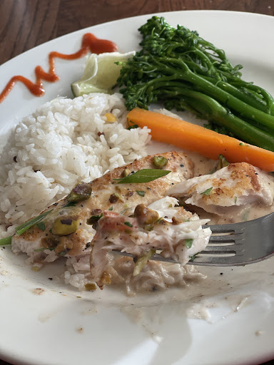 I wish we had discovered the Phoenix on the first night of our vacation in Port A, instead of the last night. I’m willing to bet that the Phoenix has the best menu and finest food within 100+ miles. We had a scrumptious shrimp-topped fried tomato appetizer. Husband enjoyed a gorgeous steak, and I had the triple tail fish with a coconut and pistachio sauce that was very possibly the best fish I’ve ever eaten. The menu has a slight Japanese flair which adds some amazing new flavors to the menu. The sake was incredible while others bragged on the Phoenix Martini.