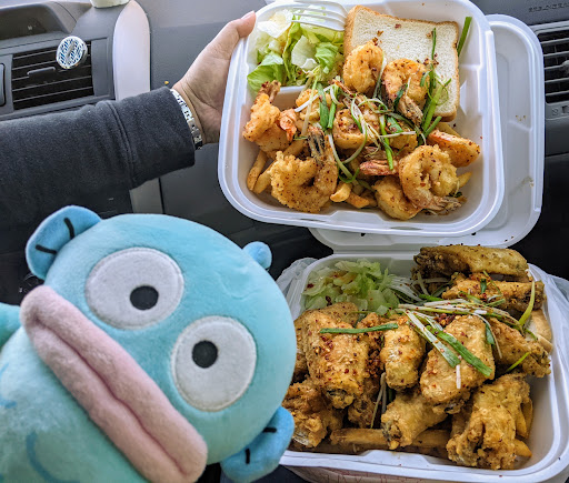 THE FOOD The 2 main items I always eat, depending on my flavor mood and reasoning, are the Salt & Pepper Chicken wings or the Salt & Pepper Shrimp. Personally I prefer the shrimp since wings are not always my favorite thing to eat. From talking to the family members who work the front, the items are prepared simple. A hot wok fire, oil, your items lightly breaded in corn starch, then tossed in the wok/pan. Inside the searing pan they toss in: a few seasonings, red pepper flakes, and finish off with julienned cut green onions. The oil is so hot that it fry's the green onions almost stiff with a slight crunch at times (tasty and nice). In the finish, they lightly coat the shrimp/chicken choice with fresh sea salt to complete the fresh taste. Your main selection is rested on a bed of french fries, white bread, and a small salad (on the side) then all presented to you in open to-go container for your approval. Personally, the presentation is a great touch for a small place that ensures you that you get what you ordered each time. I ordered 3 portions to-go for my family and they opened each and every box for my approval.