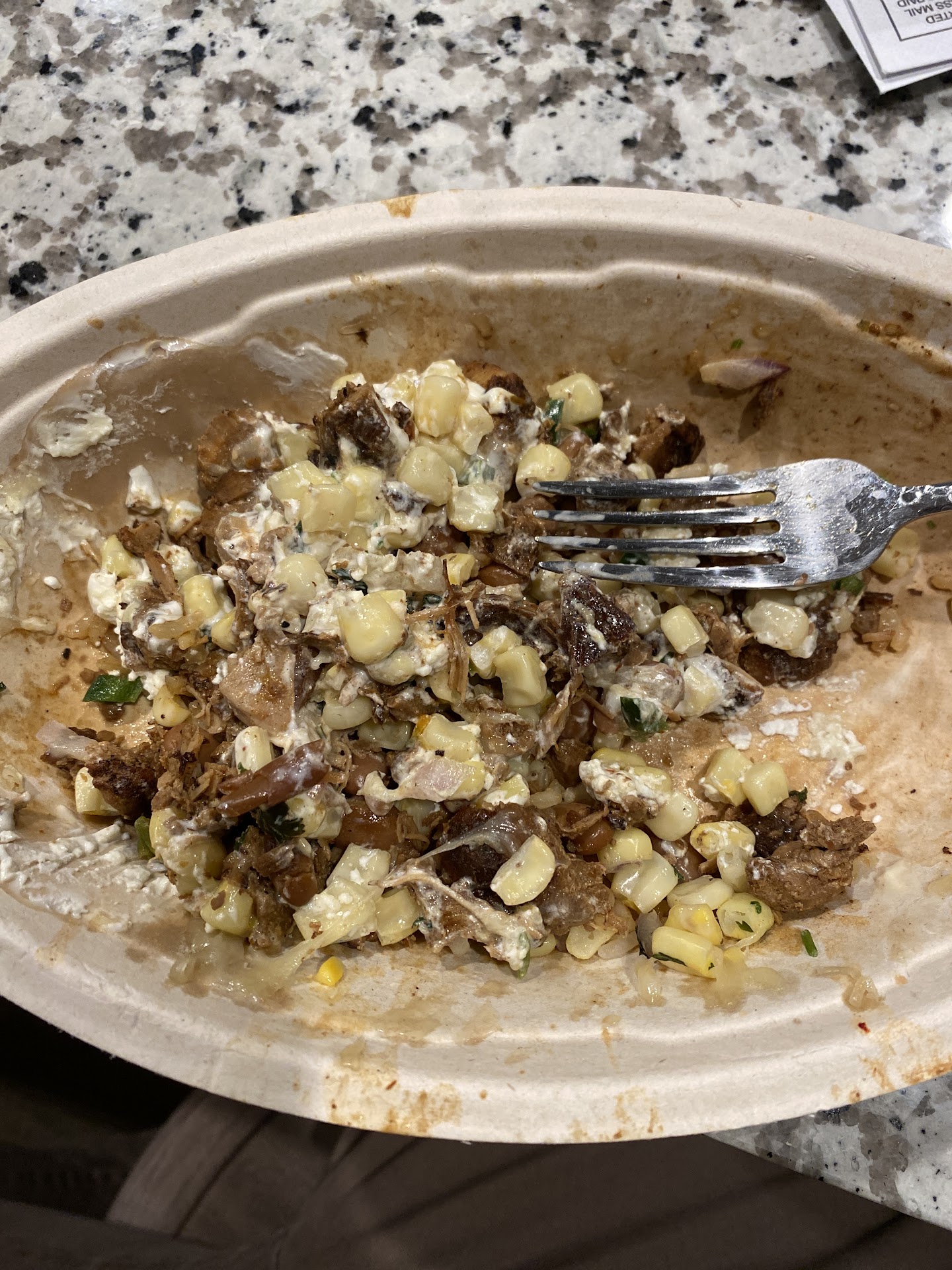 Instead of making my bowl 🥣 with my sides on the side and not on the bowl like the {{{sour cream🥛-(that wont do well stored for later and will go☣️ bad 🤢when I don't have access to a fridge🧊 till I come off from work or far from home or busy) and avocado🥑-(that turns brown 🟤quick and I surely dont want it sitting on my food yet I know its separate cost, im explaining why a person wouldn't want there stuff that is not on the side if they had a choice without extra bs😤) all 3 (WET💦) sauces🫕 and a ton of water💦 juice in the corn🌽 scoop-(if kept in for a while in the food then it'll ruin 🥲🤮the food sitting in the stuff and I can't have it all |||soggy 🗑️and wet 💦& can't reheat ♨️ the uncooked vegetables🥬🍅 to taste right and can't control how⚖️ much you want on it and risking putting too much sauce 🌶️🥵or water💦 in the food from how wet the corn🌽 and green🟢 sauce is|||| and that [Abigail👁️👄👁️💅] one doing extra that I didn't want with my service charged me 💲3.20 😑 MORE cuz I asked for my stuff to be on the Side and Not In the Bowl.
