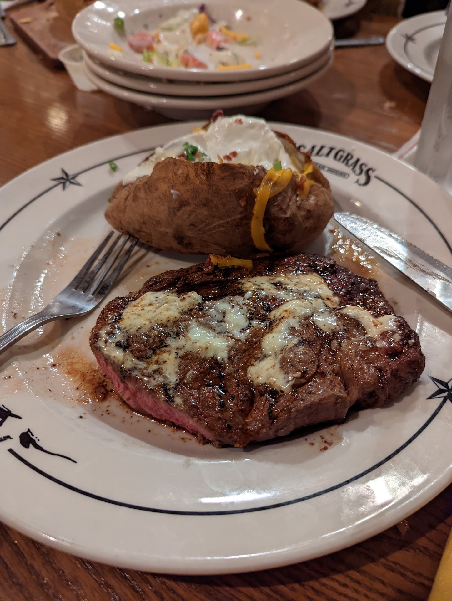 Ā Ā Ā Read moreSo yesterday My folks drove in from Houston to visit, and when discussing lunch, salt grass was brought up because they are Landry's card holders and I confessed to never been there before, so off we went. Upon arriving and walking inside, the first thing I noticed was the decor and atmosphere of the place which I found to be pretty cool so already I had a decent enough feeling. That feeling was only slightly skewed after looking at my silverware noticing that one of the forks was incredibly cruddy it looked like it had baked on cheese and gravy stuck to it which I did not make a big deal out of I went over to our waitress and kind of nonchalantly after if I could have another fork she said of course finish that back down what about enjoying the rest of my appetizer. But then she got another strike after the chop steak I ordered with no grilled onions and made a point to say no grilled onions more than once, arrived in front of me with a cartoon amount of grilled onions on top of it, which again I did not make a big deal out of I simply got my fork and scoop the grill onions on to the small bread plate I was given and then handed that plate to our waitress thinking okay well I don't have to say it was wrong she should have realized but she said nothing about it no apologies no nothing whatever. Besides that the food was pretty good no complaints there it was just the lack of detail as far as the silverware goes and the paying attention to customer service and making sure that they are correct and they are happy that's where I would see some work needing done. And all that being said, I've worked in the food industry before and serve the people, so I know it's...